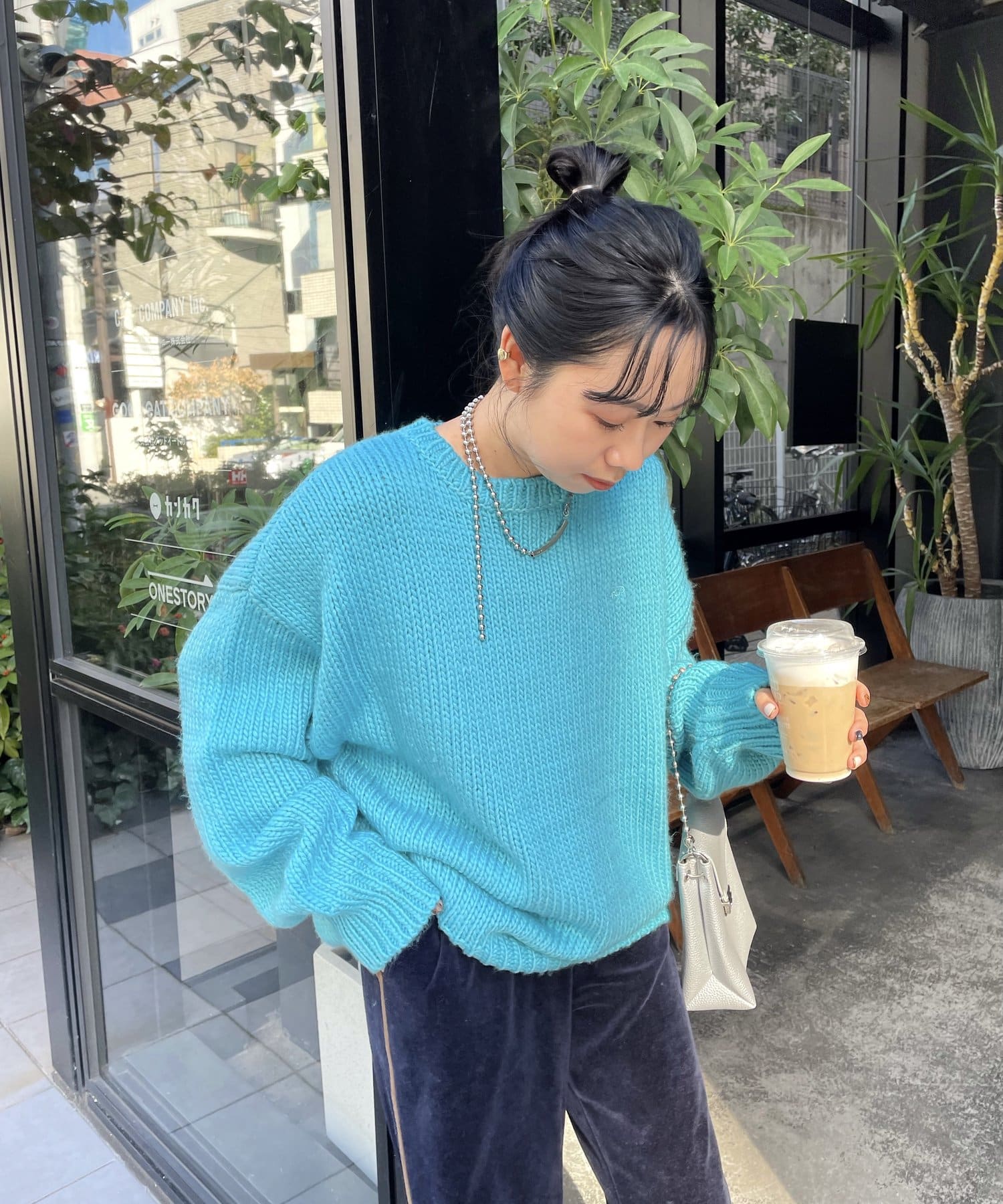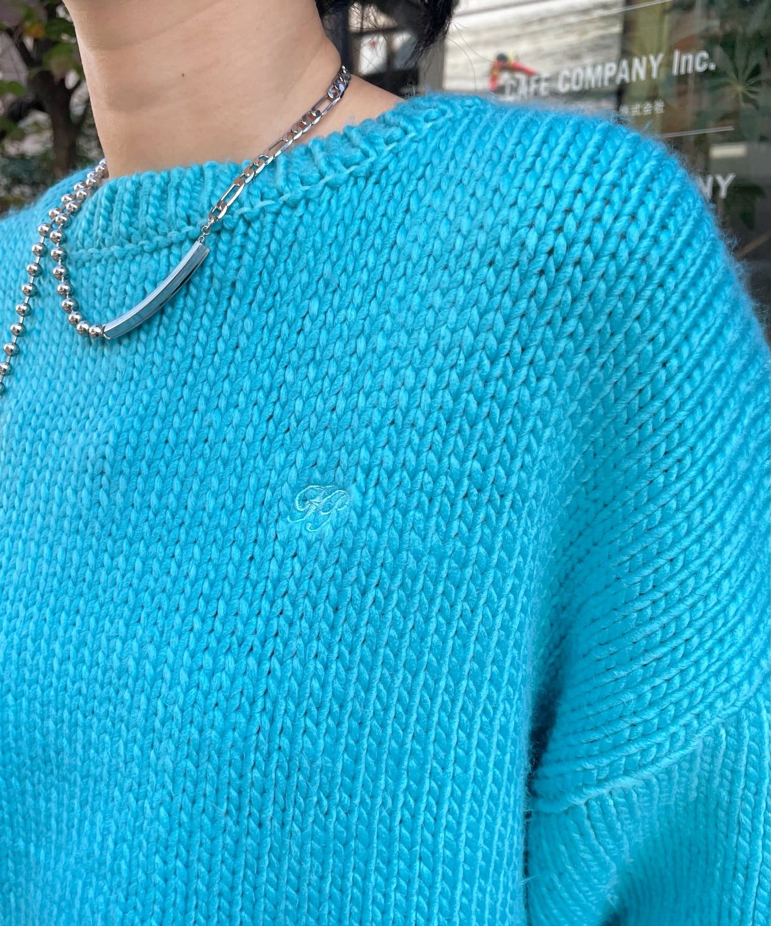 発色の良いカラーに気分も上がる!同系色の刺繍ロゴにも注目!なカラーニット