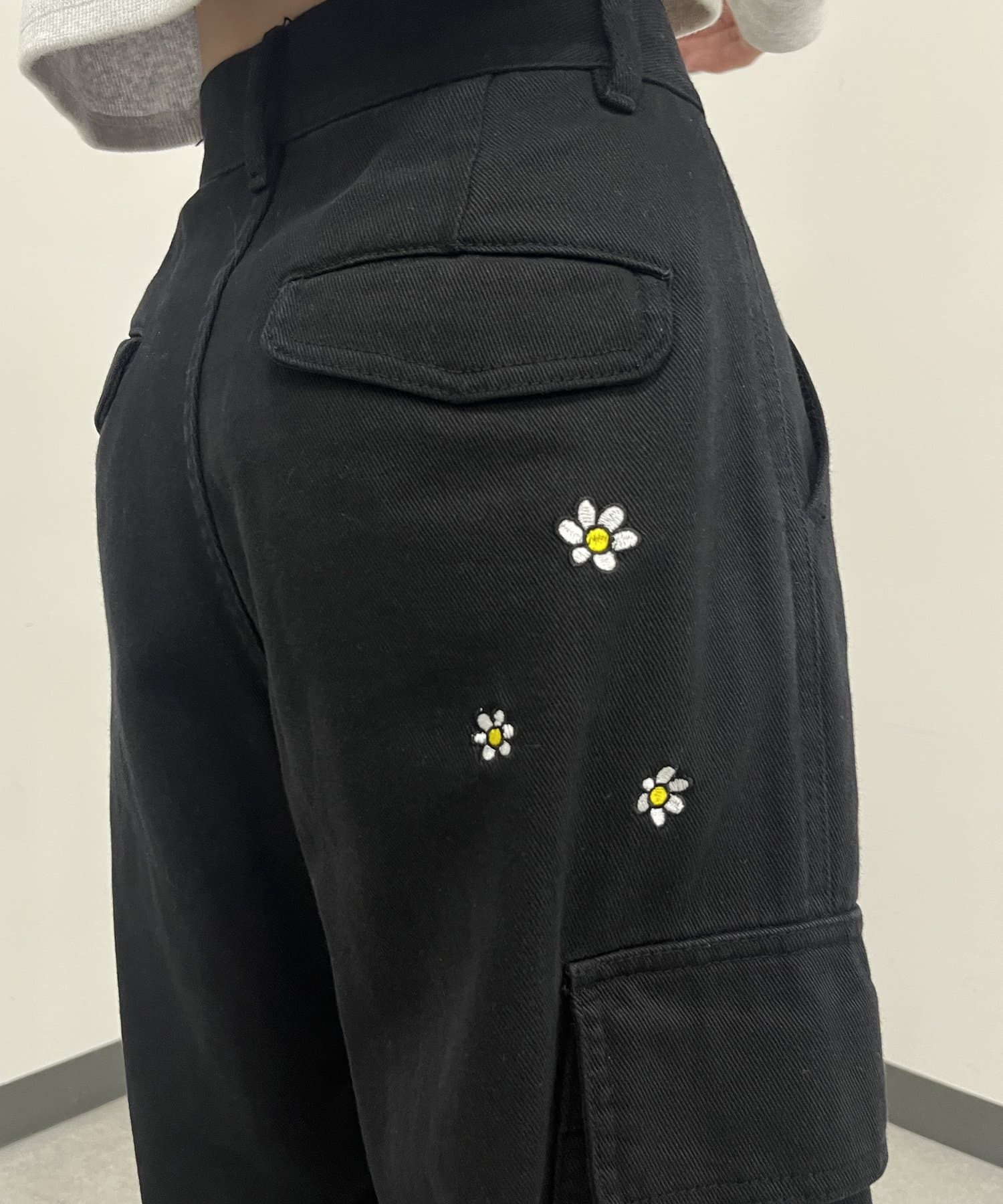・メンズライクなシルエット、ディティールに後ろのお花刺繍がアクセントに。