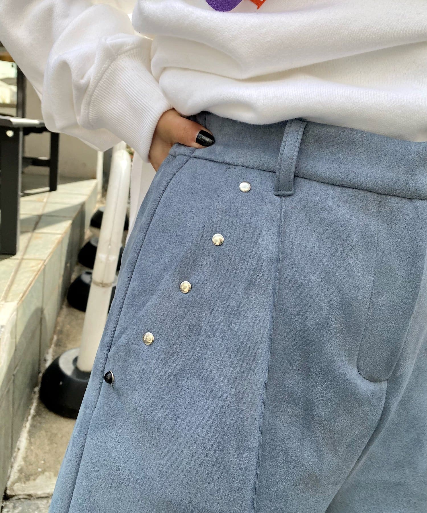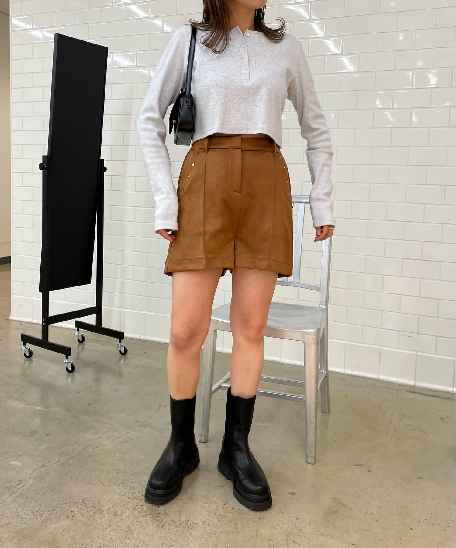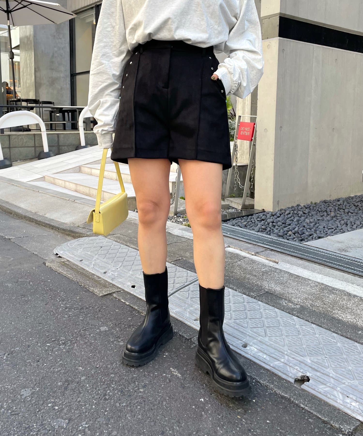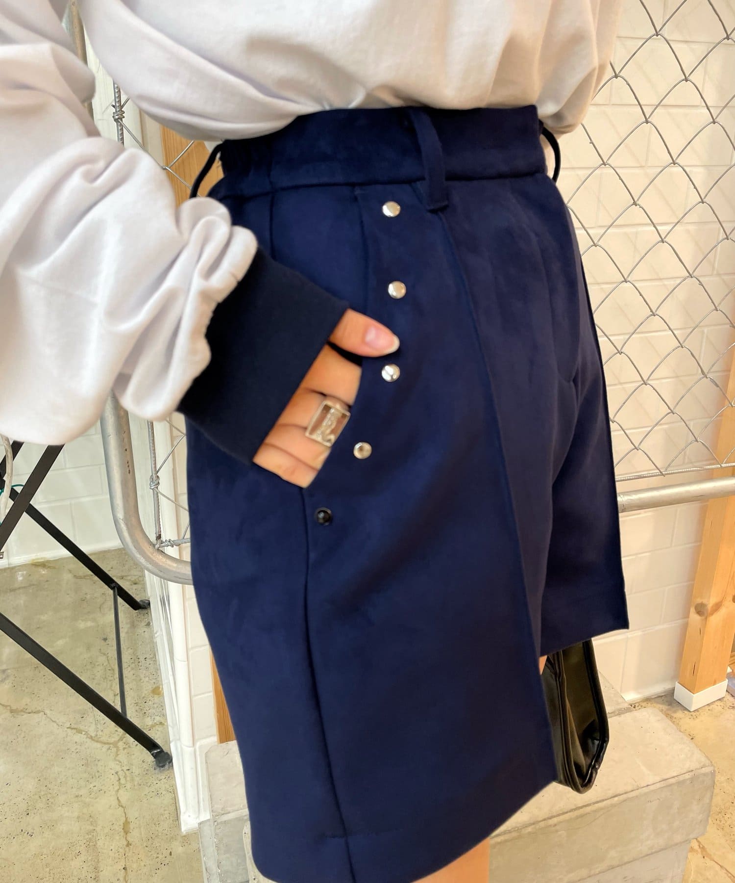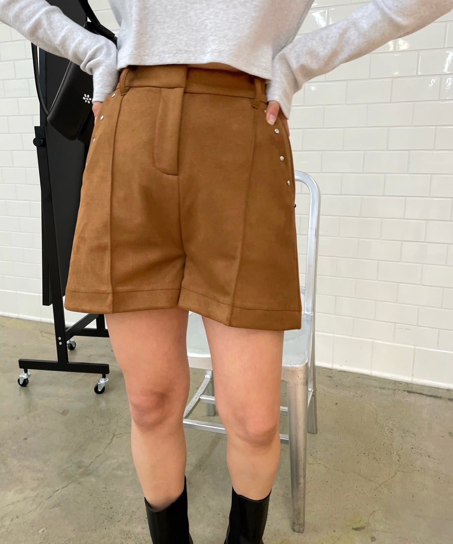 カラースタッズが効いたフェイクスウェードのショートパンツ