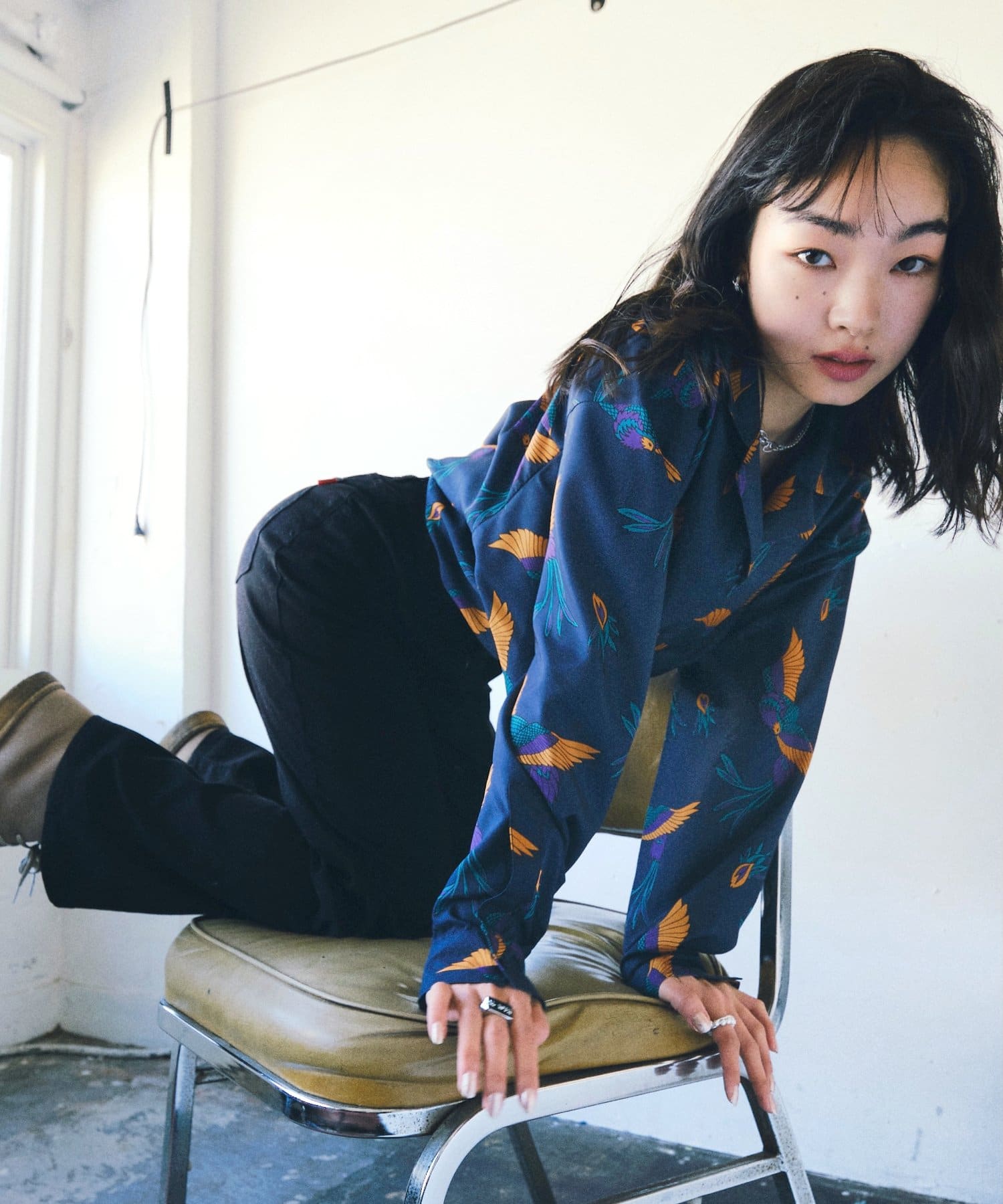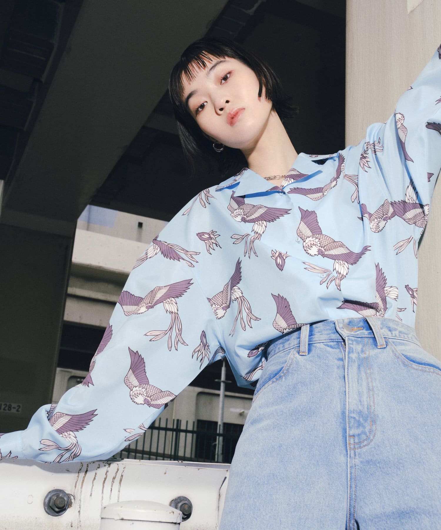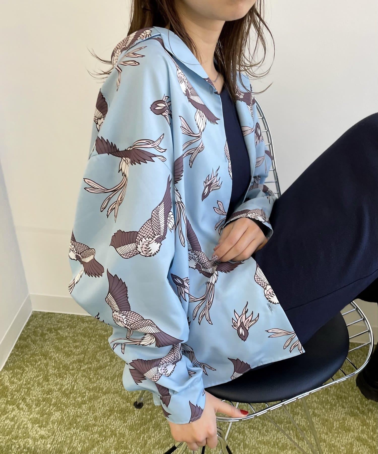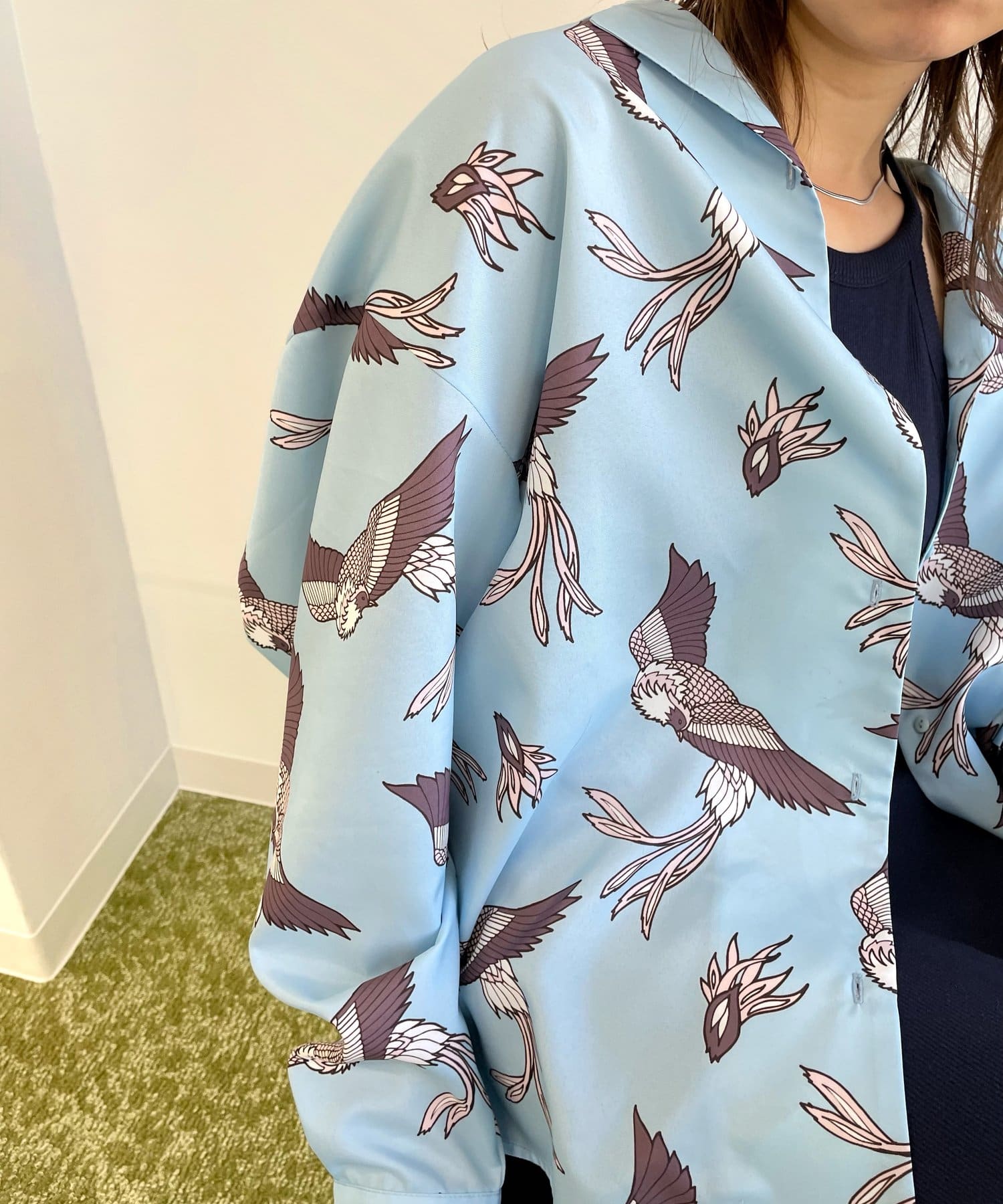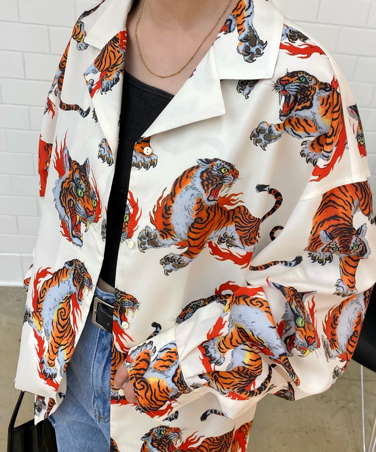 ・鳥と虎の柄が特徴的なシャツ。カラーも豊富に揃えています。(鳥:オフホワイト/ネイビー/サックスブルー, 虎:アイボリー/ブラック)