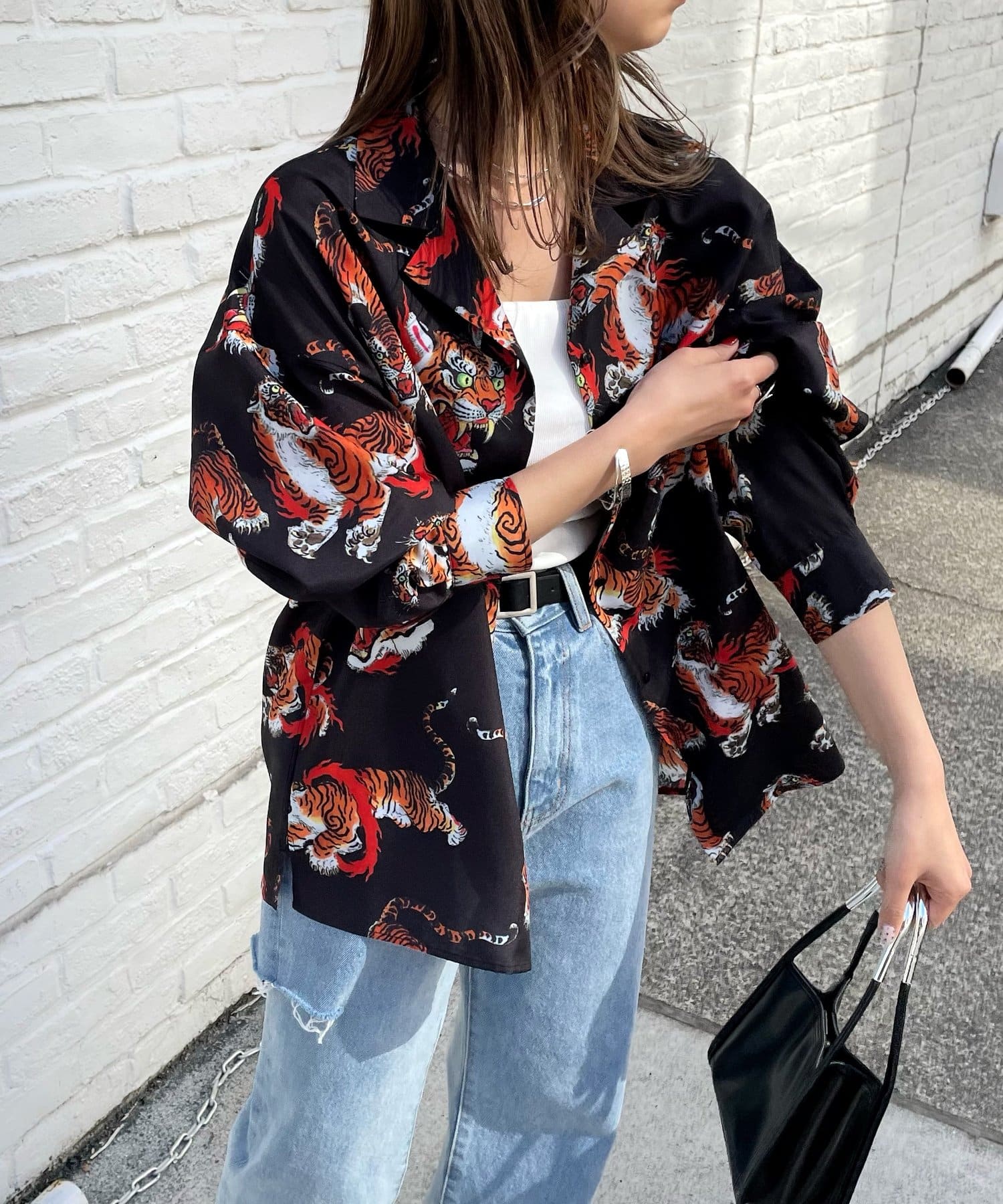 個性的な柄でインパクト大!動物柄の開襟シャツ