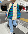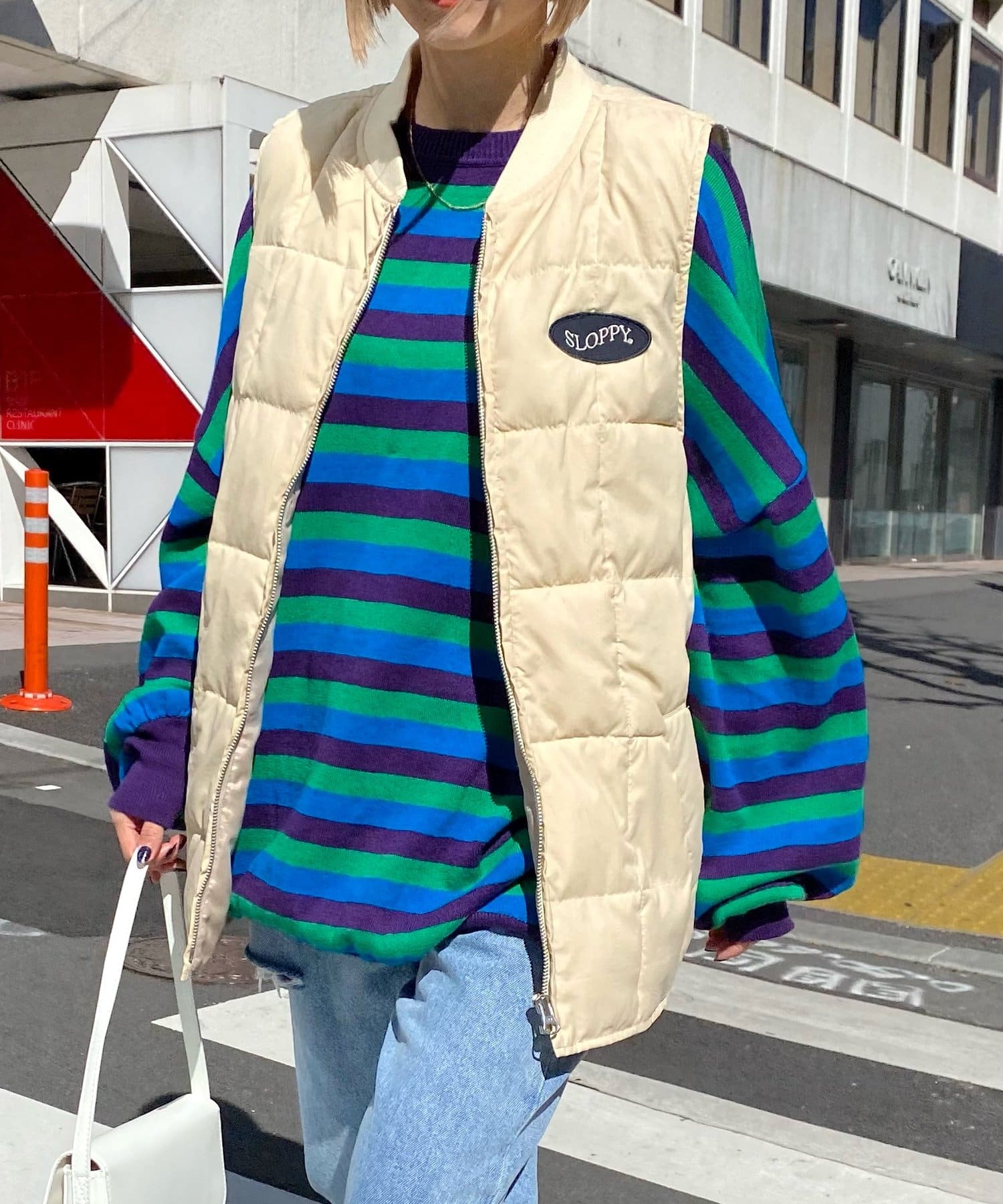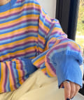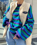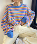 カラフルなボーダーラインが春らしく暖かな気持ちに。ビッグシルエットニット
