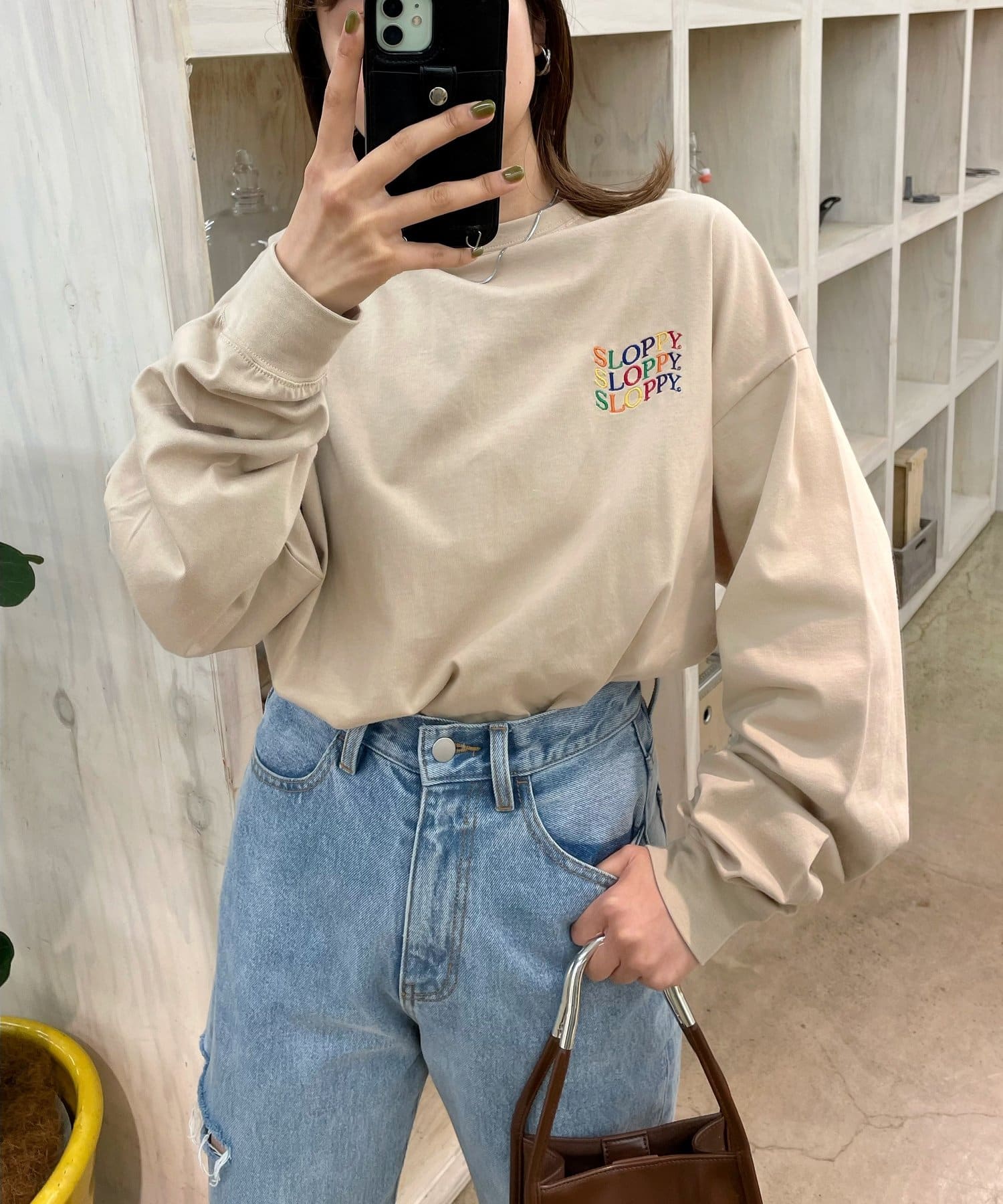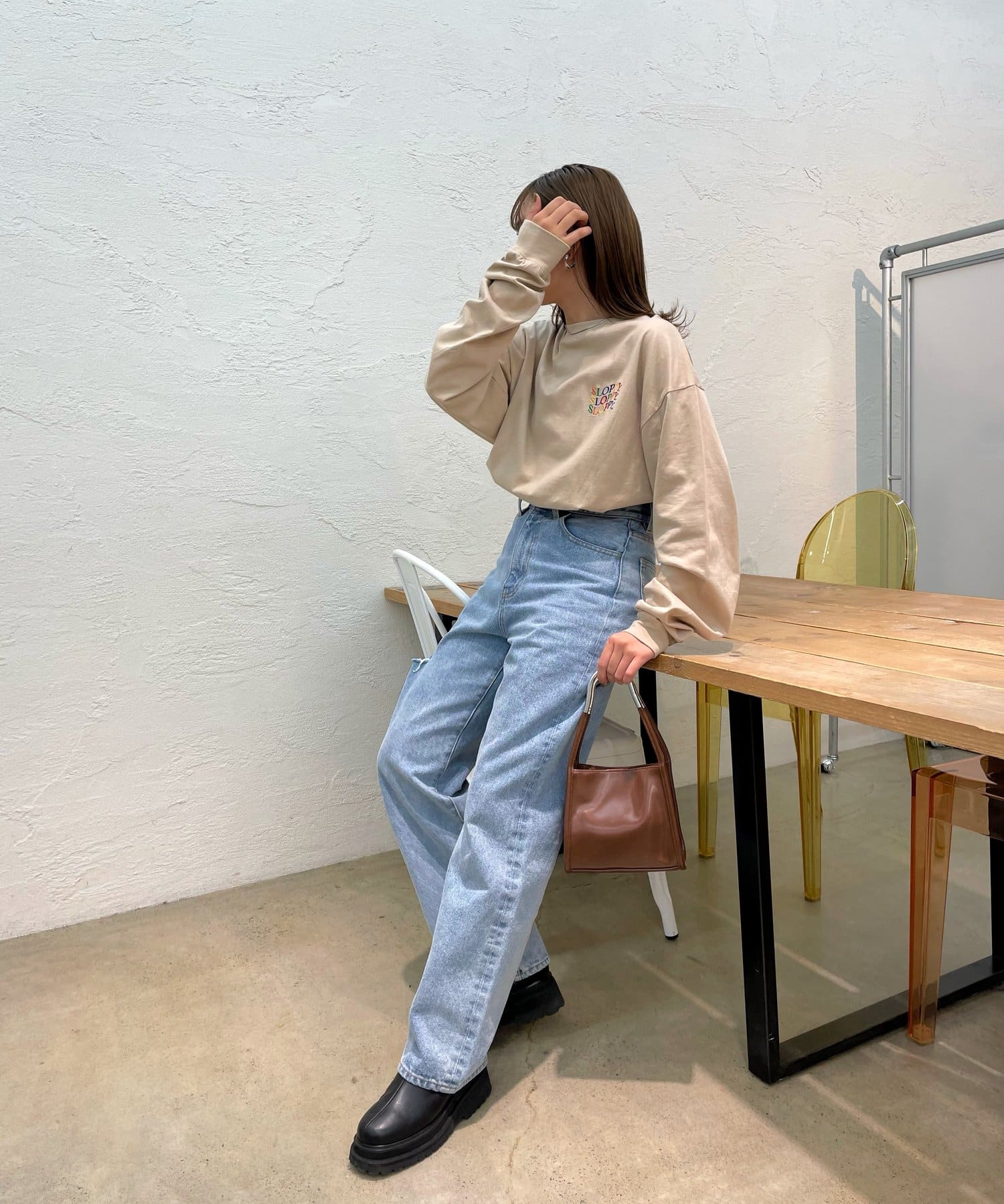 ・今季オススメは、《SLOPPY》アイテム×お花シリーズの組み合わせ。(参考カラー:オフホワイト/サンドベージュ)