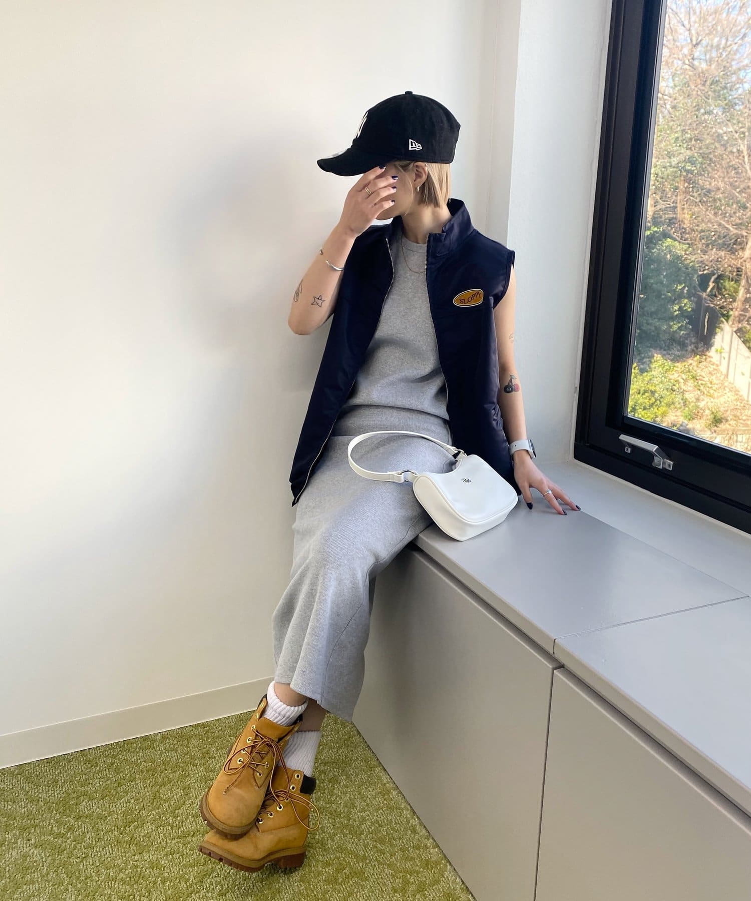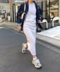 ・タイトだからこそ、ビッグシルエットのアウターやトップスとの相性◎。
