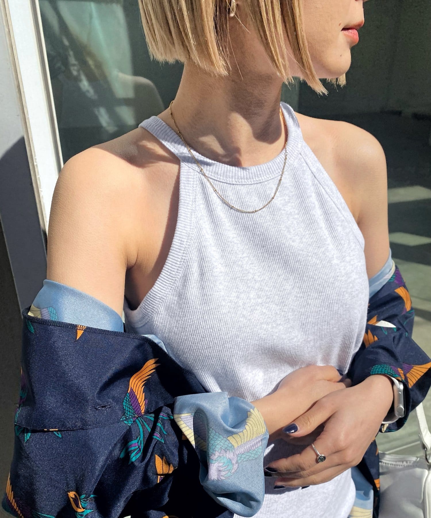 ・過度過ぎない肌見せでスタイリッシュに着られるアメスリタイプ。
