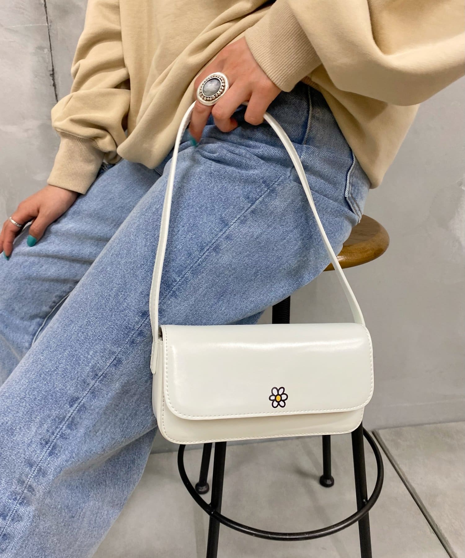 ボタン位置のお花がとてもキュート!なショルダーバッグ