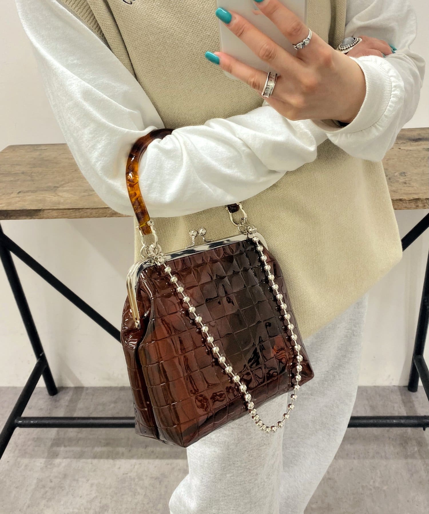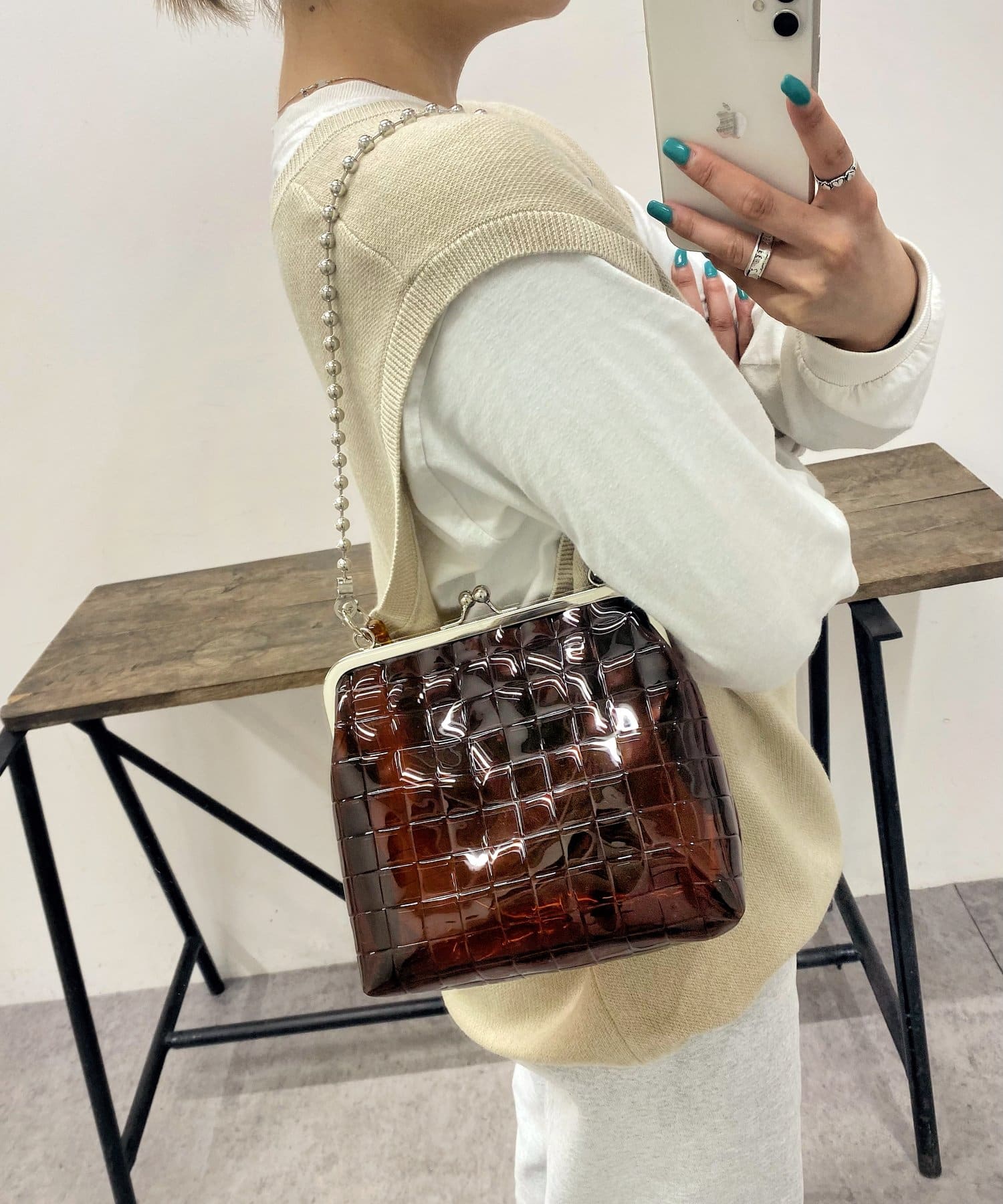 持つだけでオシャレ度をプラス。がま口がアクセントになるPVCバッグ