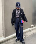・顔プリントアイテムのインナーをカッティング部分からチラ見せ。