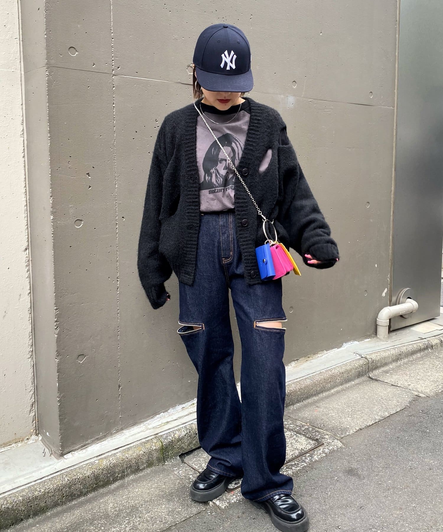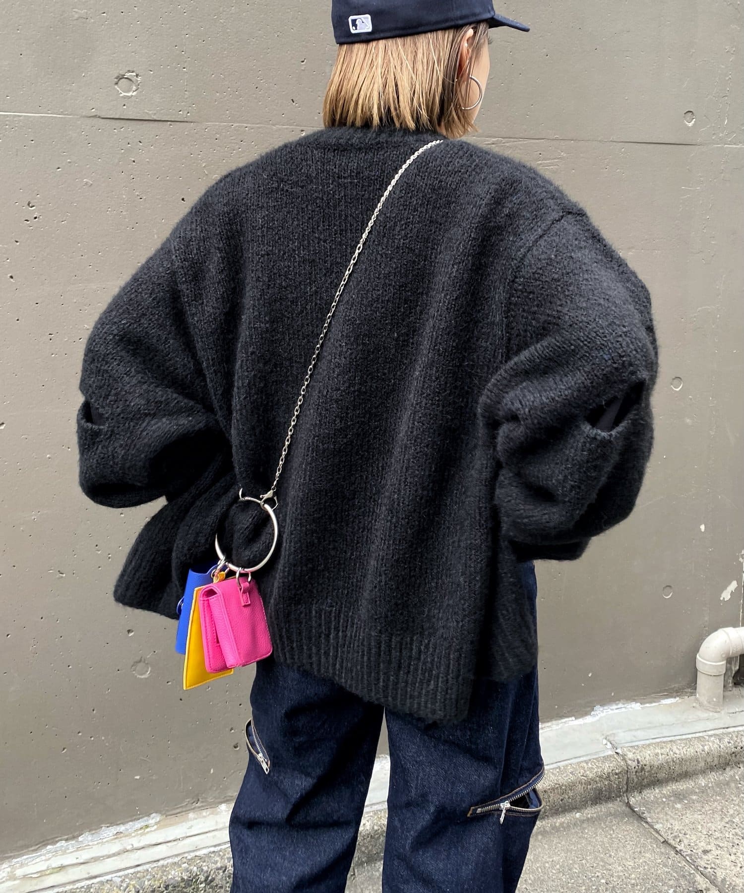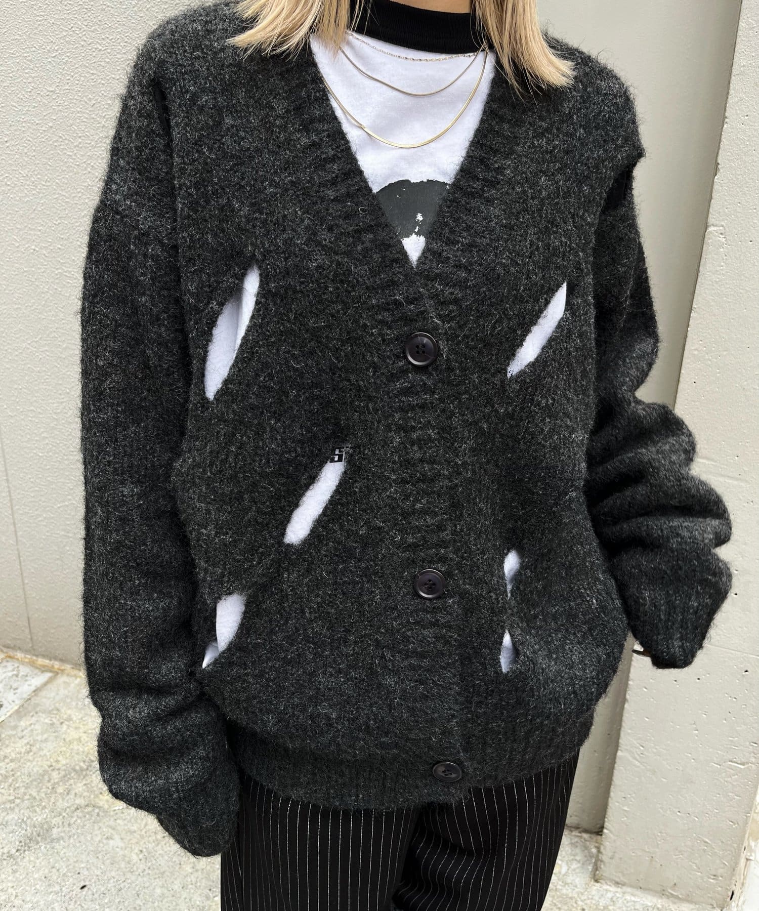 アイキャッチな斜めのカッティングデザインが効いたカーディガン