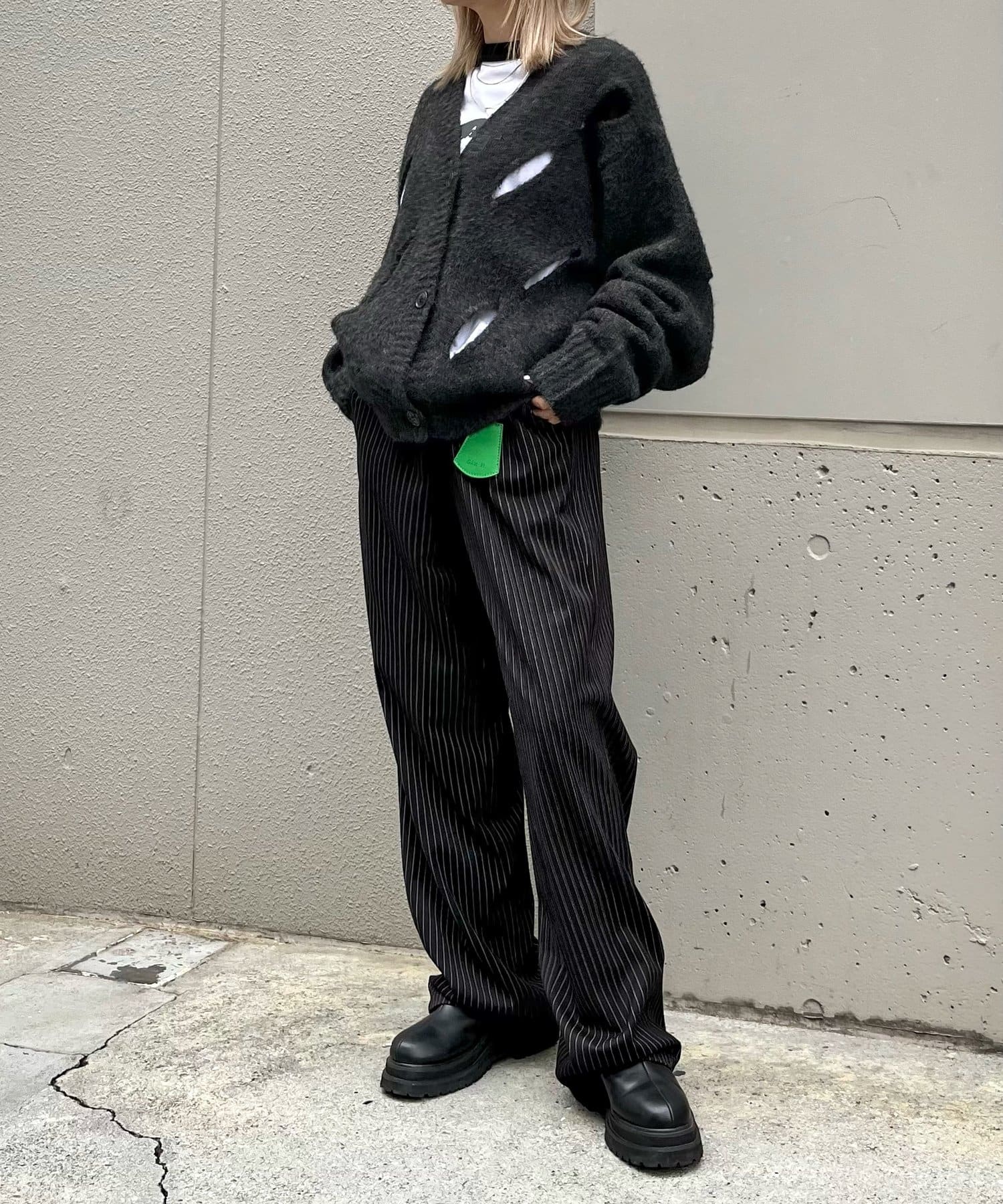 ・身頃から袖にも施された穴あきデザインが特徴的。