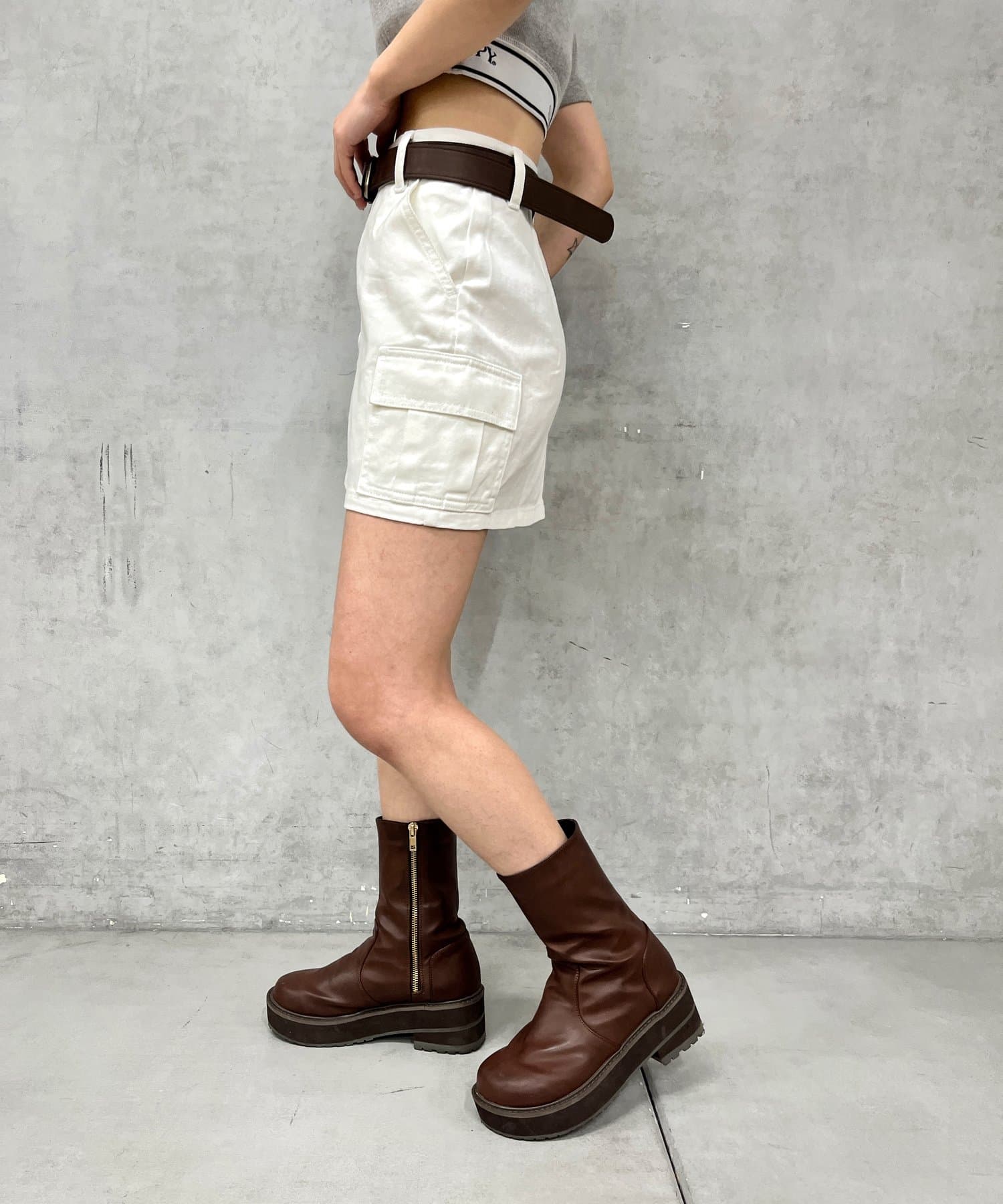 ・コンパクトトップスと合わせてトレンドスタイルに。
