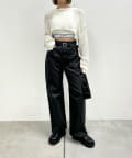 ・オイルでコーティングされた一癖あるデザインパンツ。