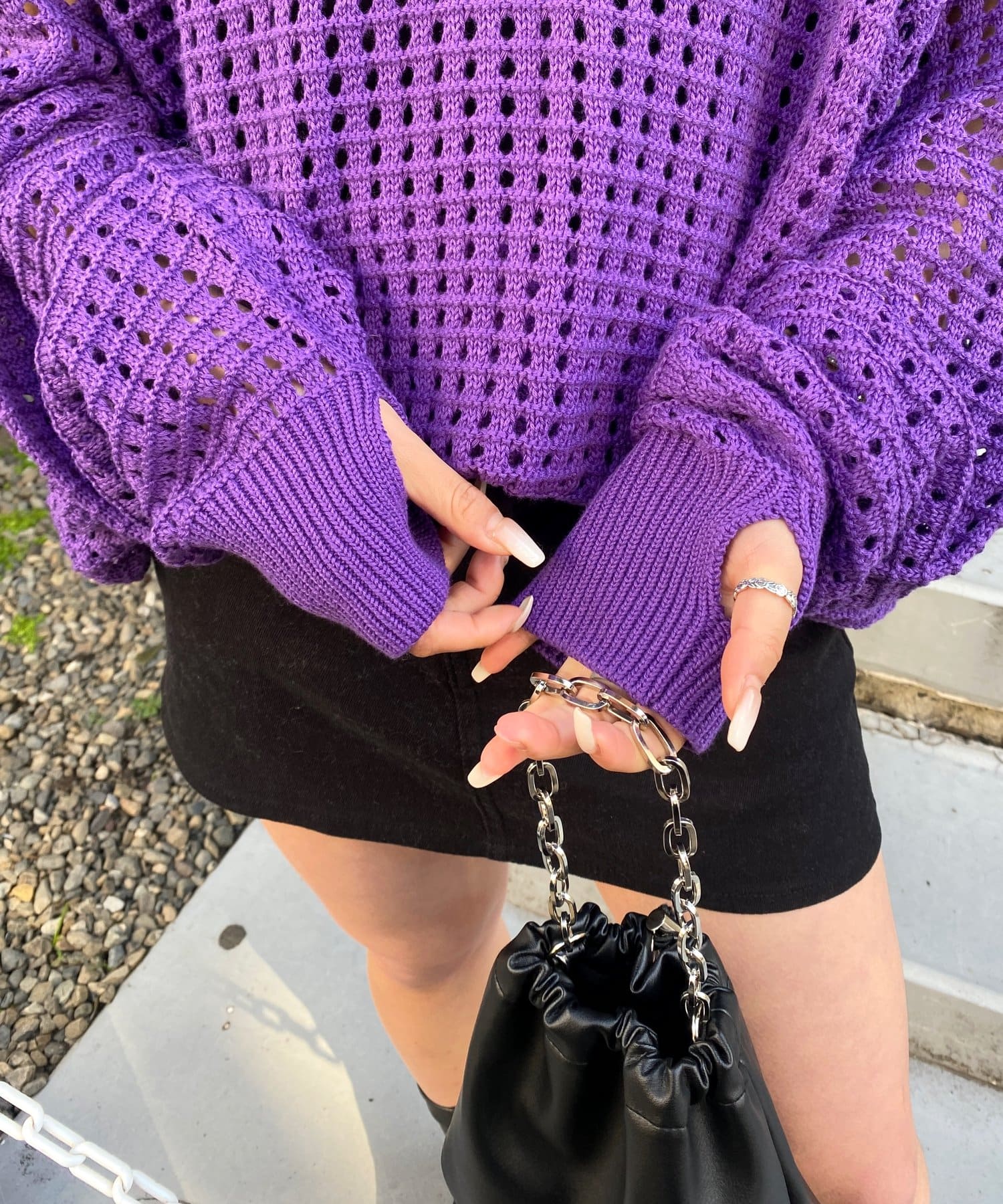 ・ざっくりとした透け感のある編み目。