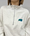 ハーフジップなので首元で雰囲気を変えて楽しめる。