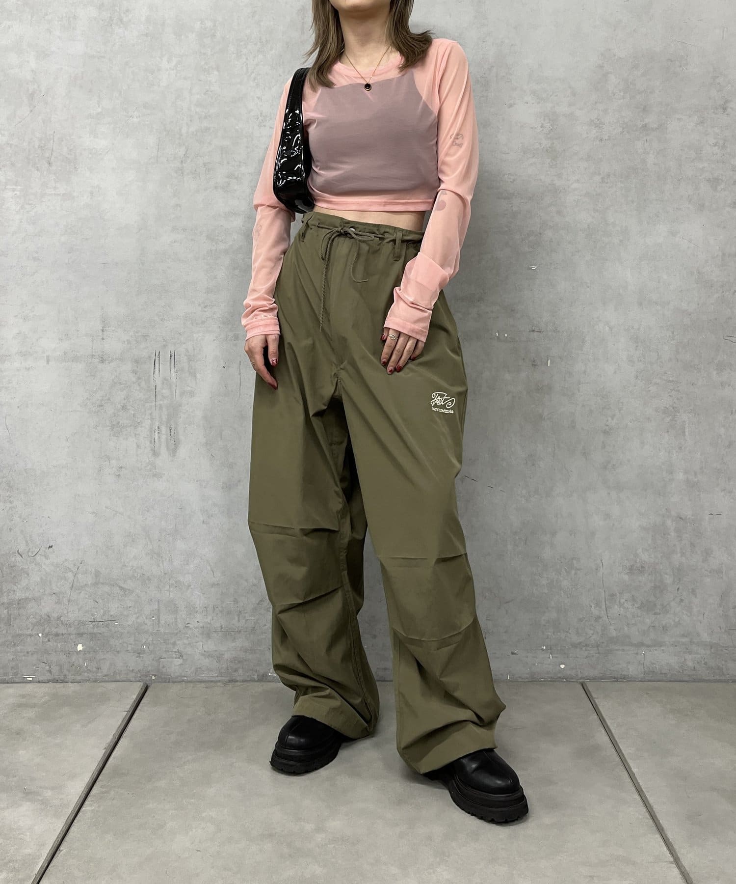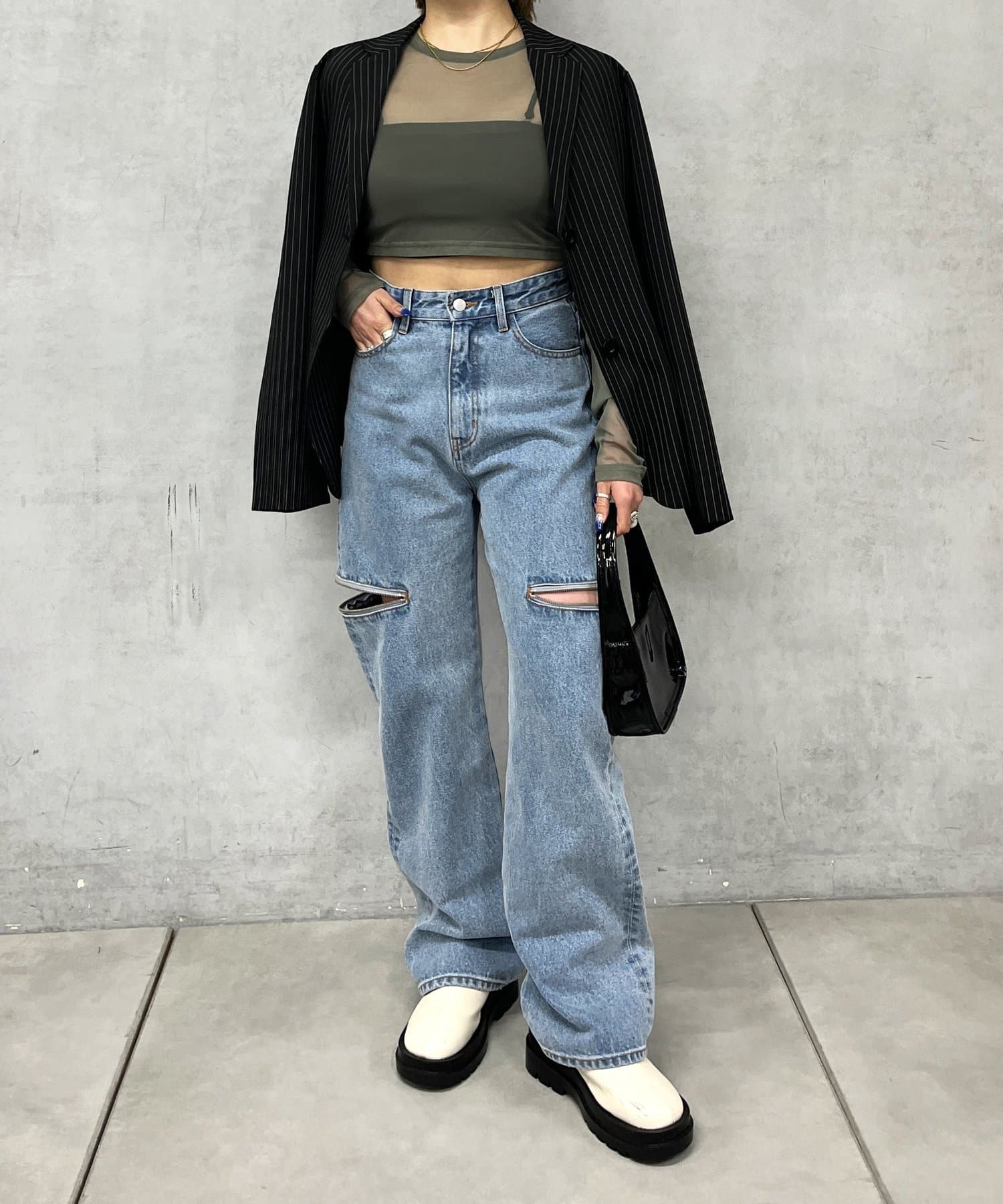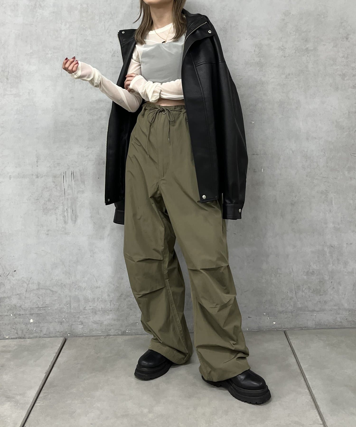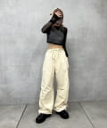 ・ショートトップス×太シルエットボトムスでトレンドスタイルに。