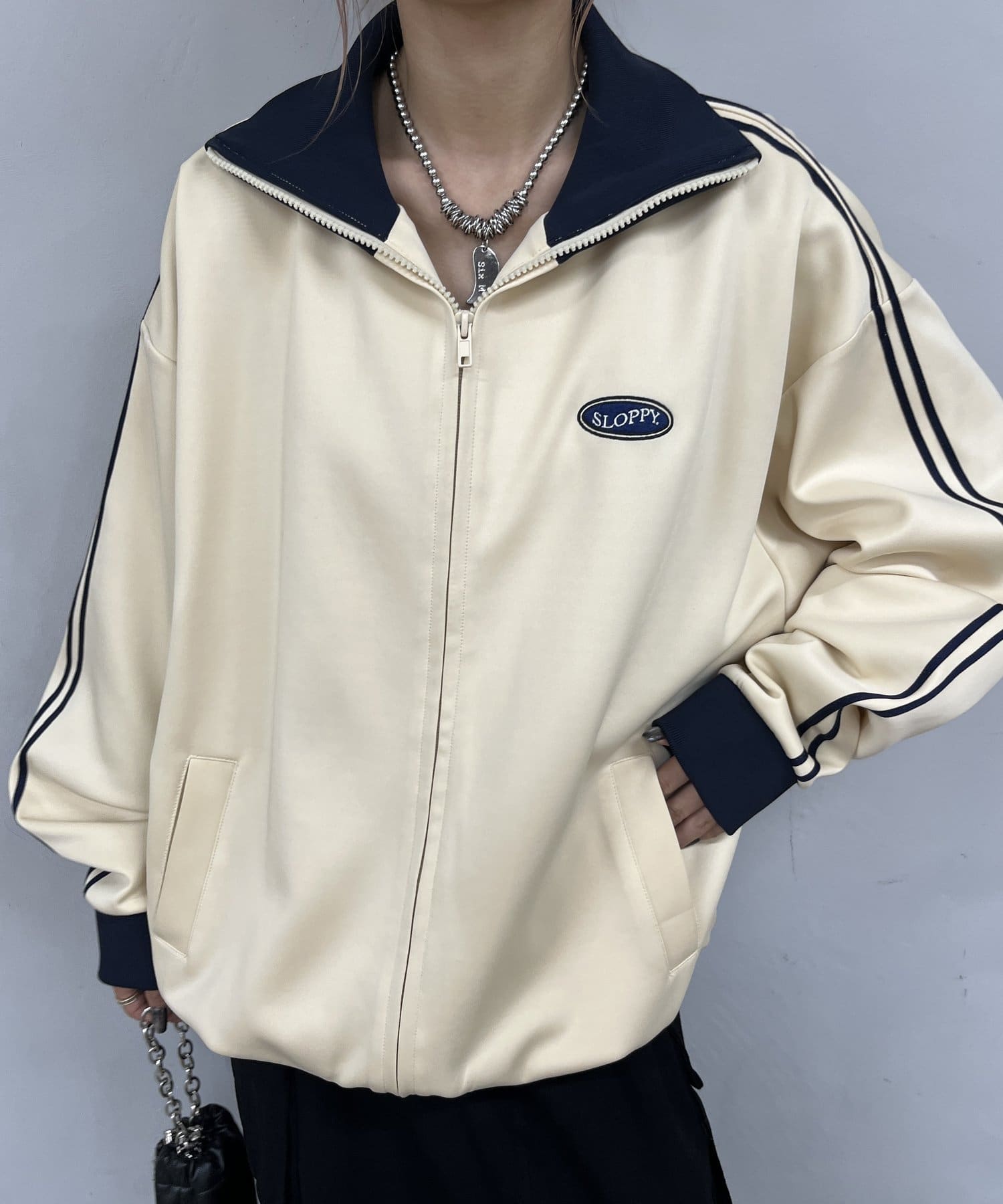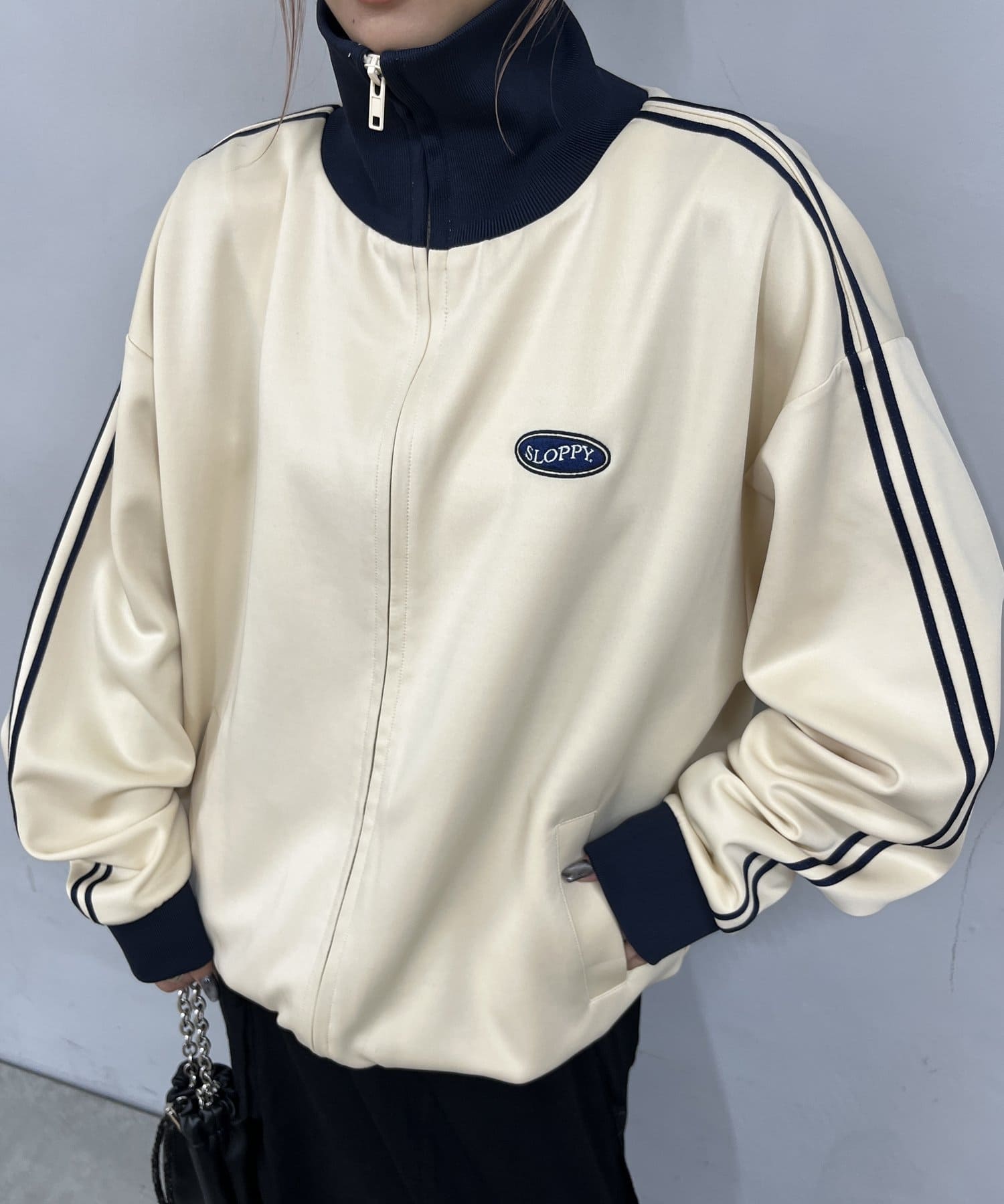 ・袖のラインと“SLOPPY”のワッペンロゴがアクセント。