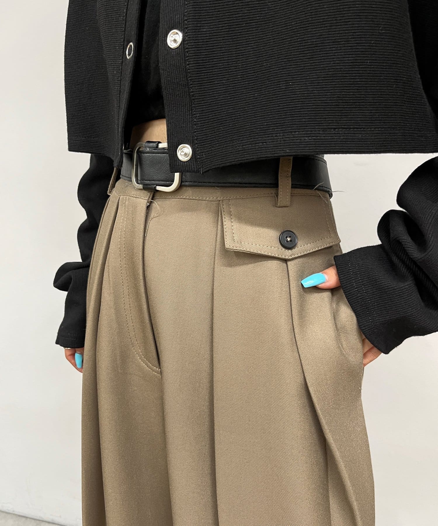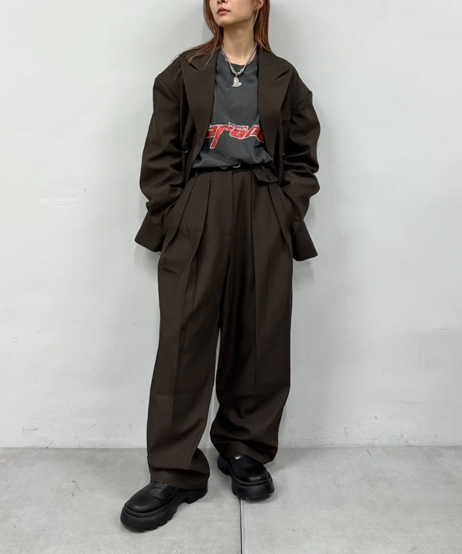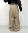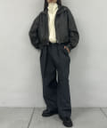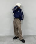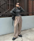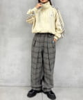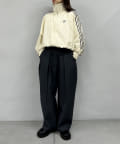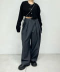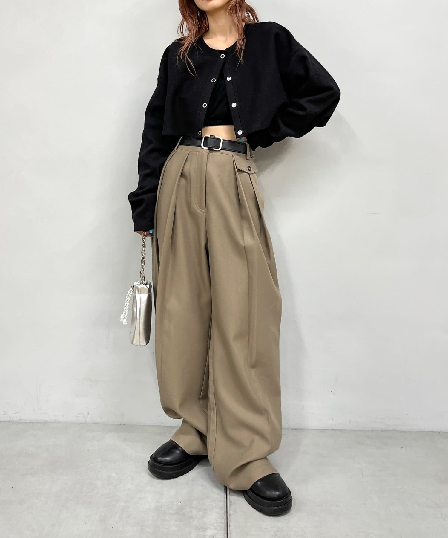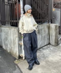 ・ボリュームのパンツにはコンパクトなトップスでバランスよく◎