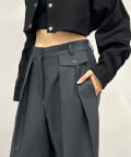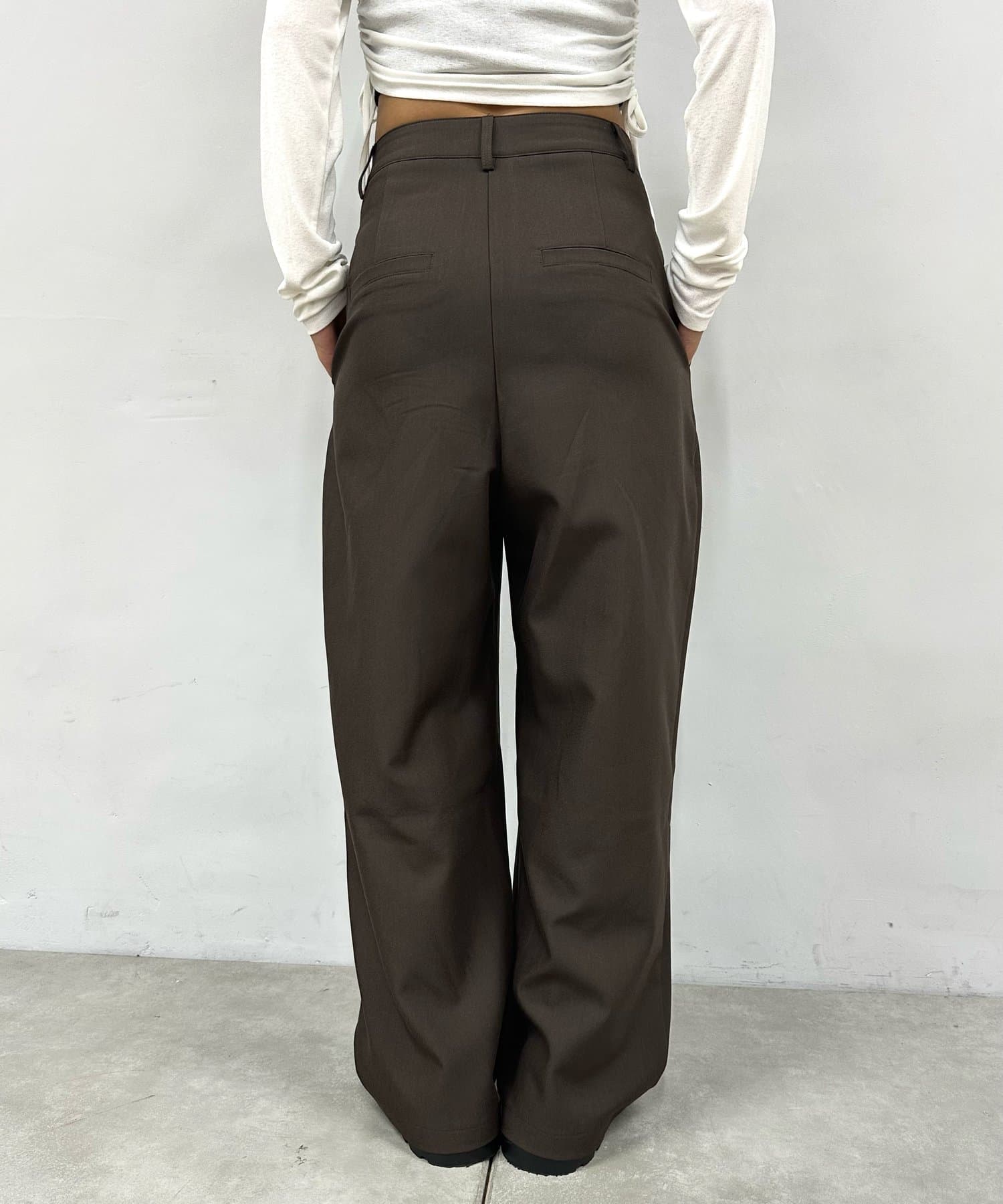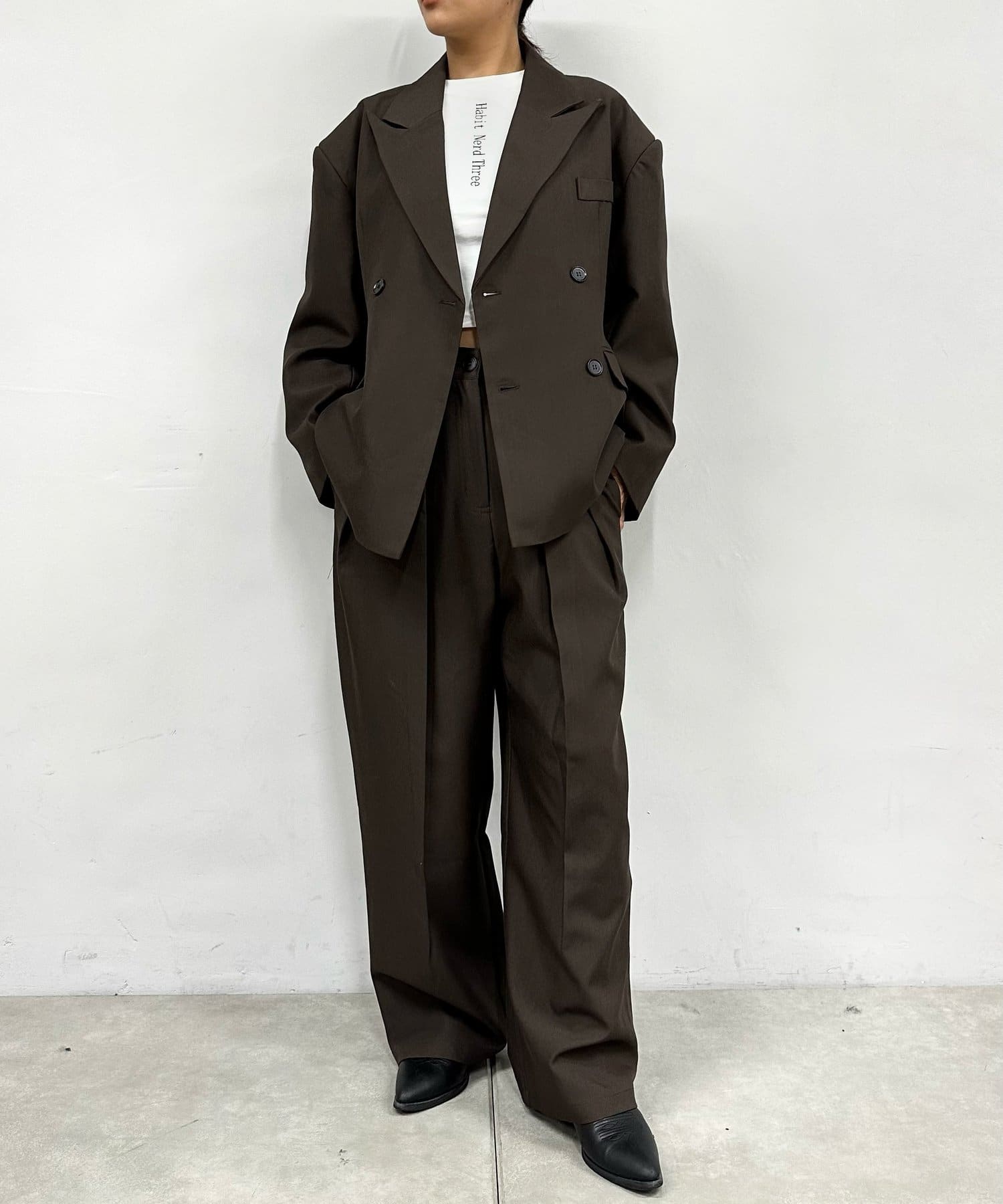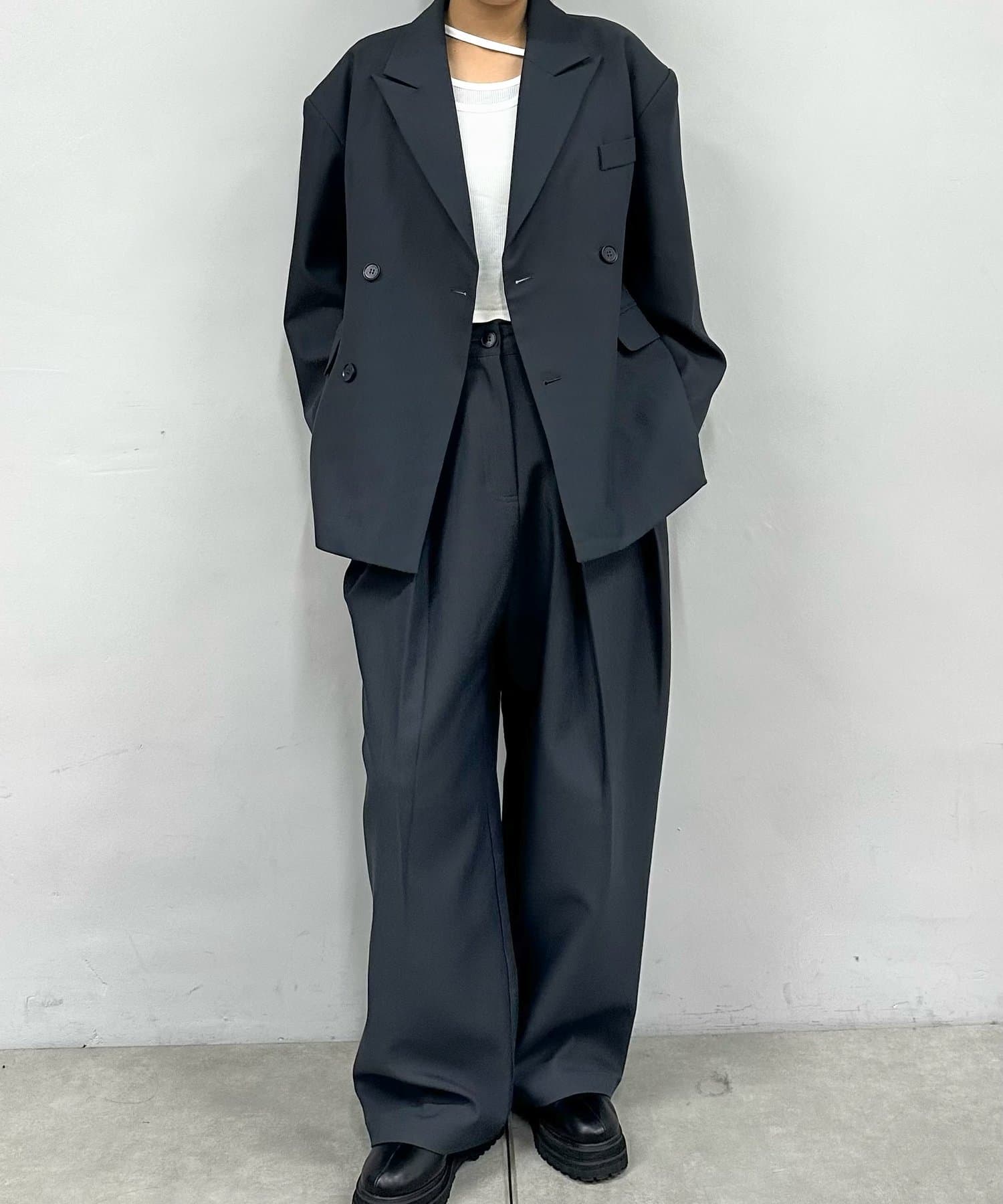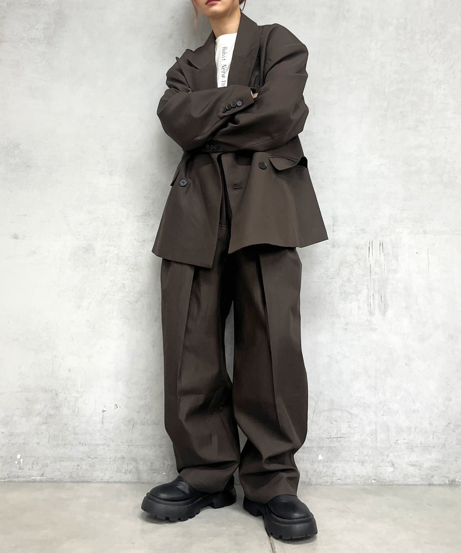 ・ボリュームのパンツにはコンパクトなトップスでバランスよく◎