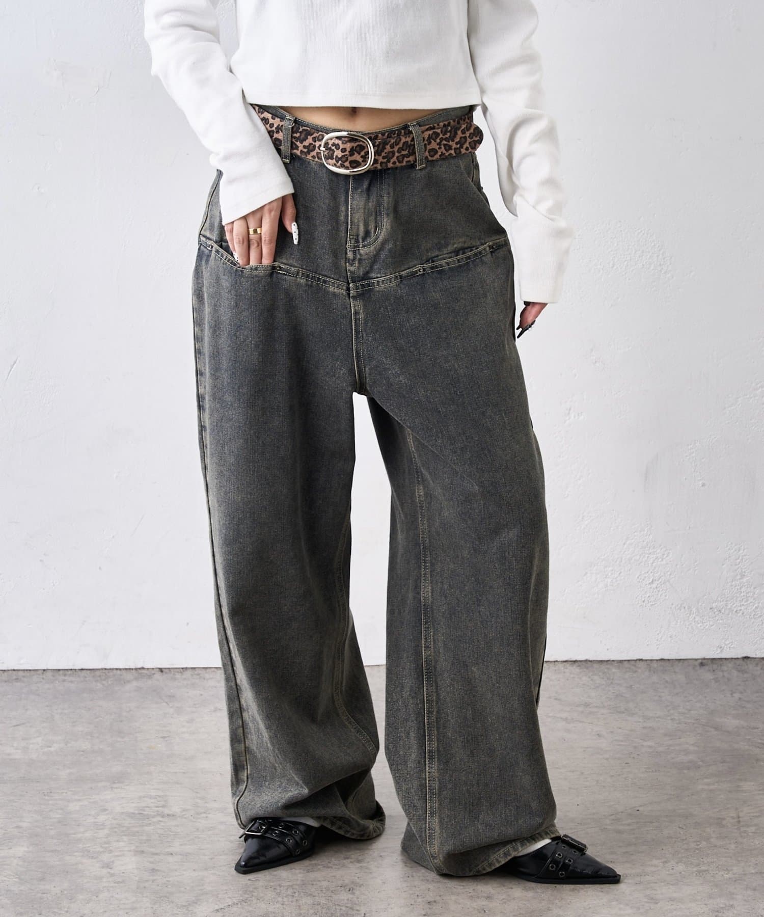 【UNISEX/サイズ展開あり】スラッシュポケットブラストワイドデニム