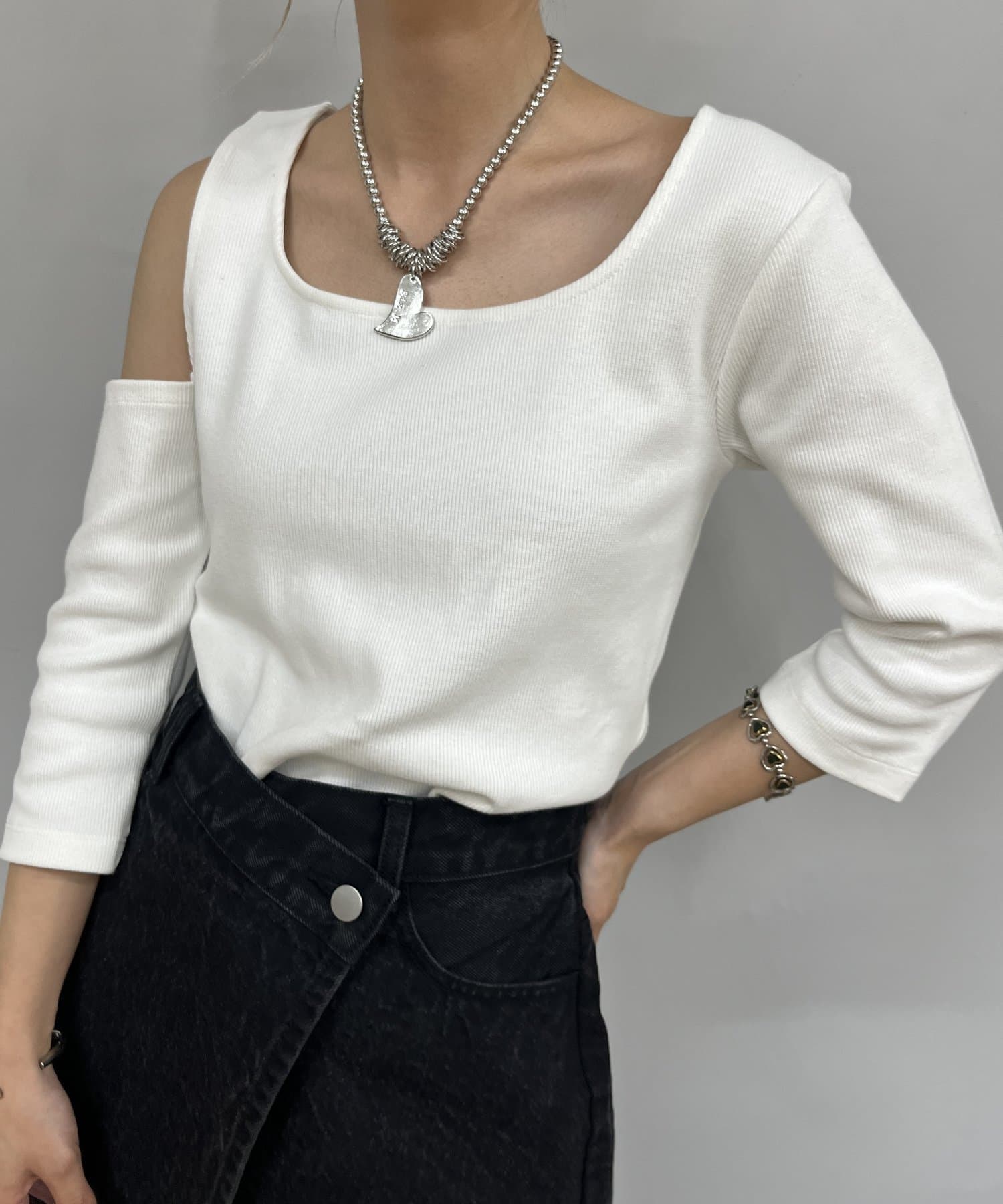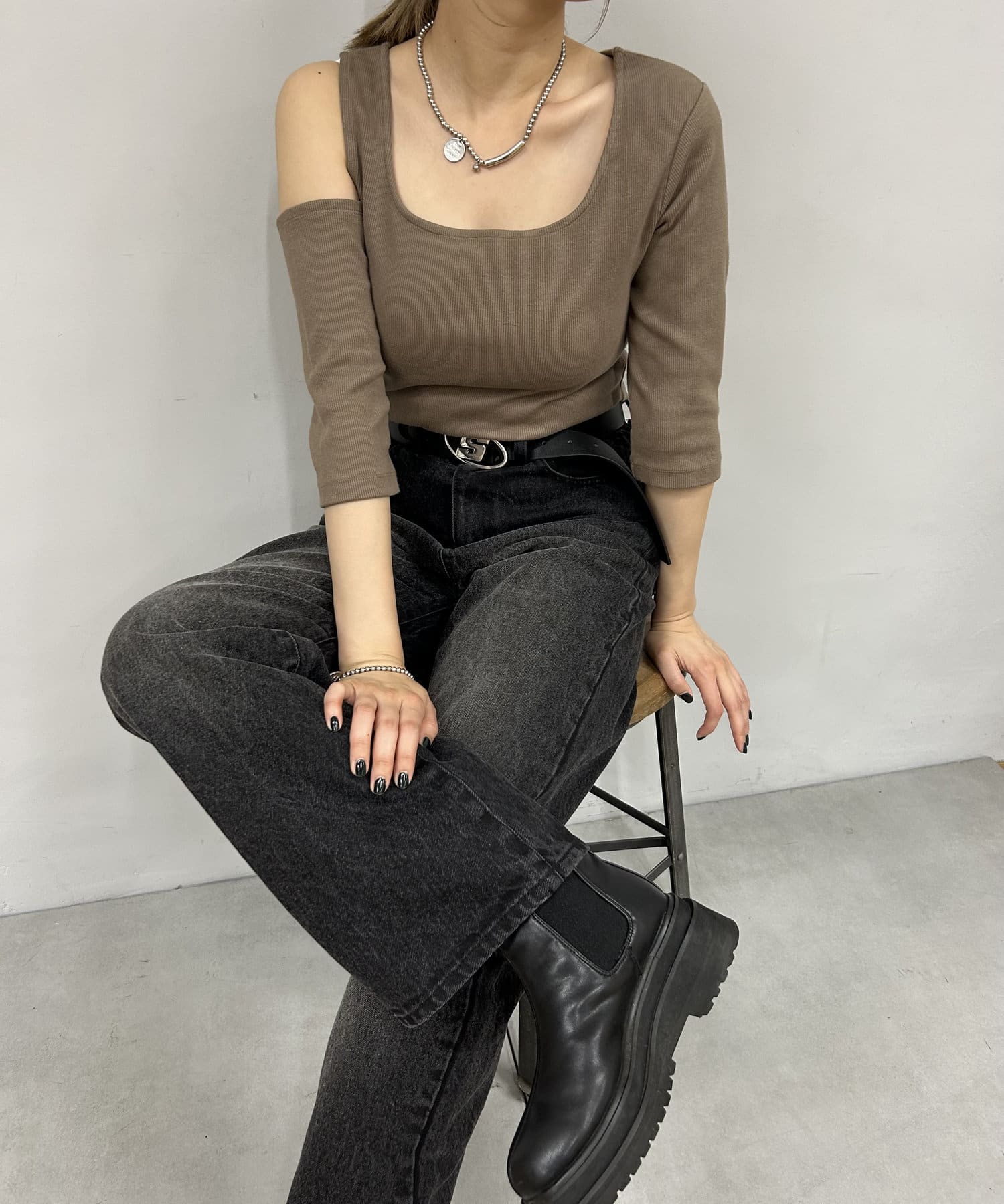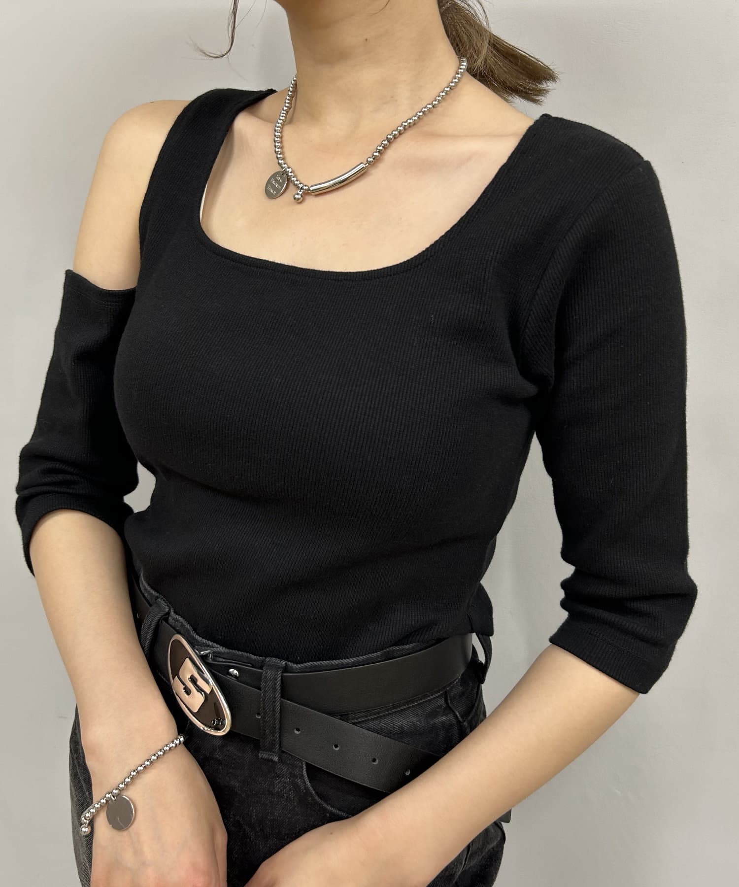 ・右肩が出るアシメデザイン。程よい肌見せ感が◎