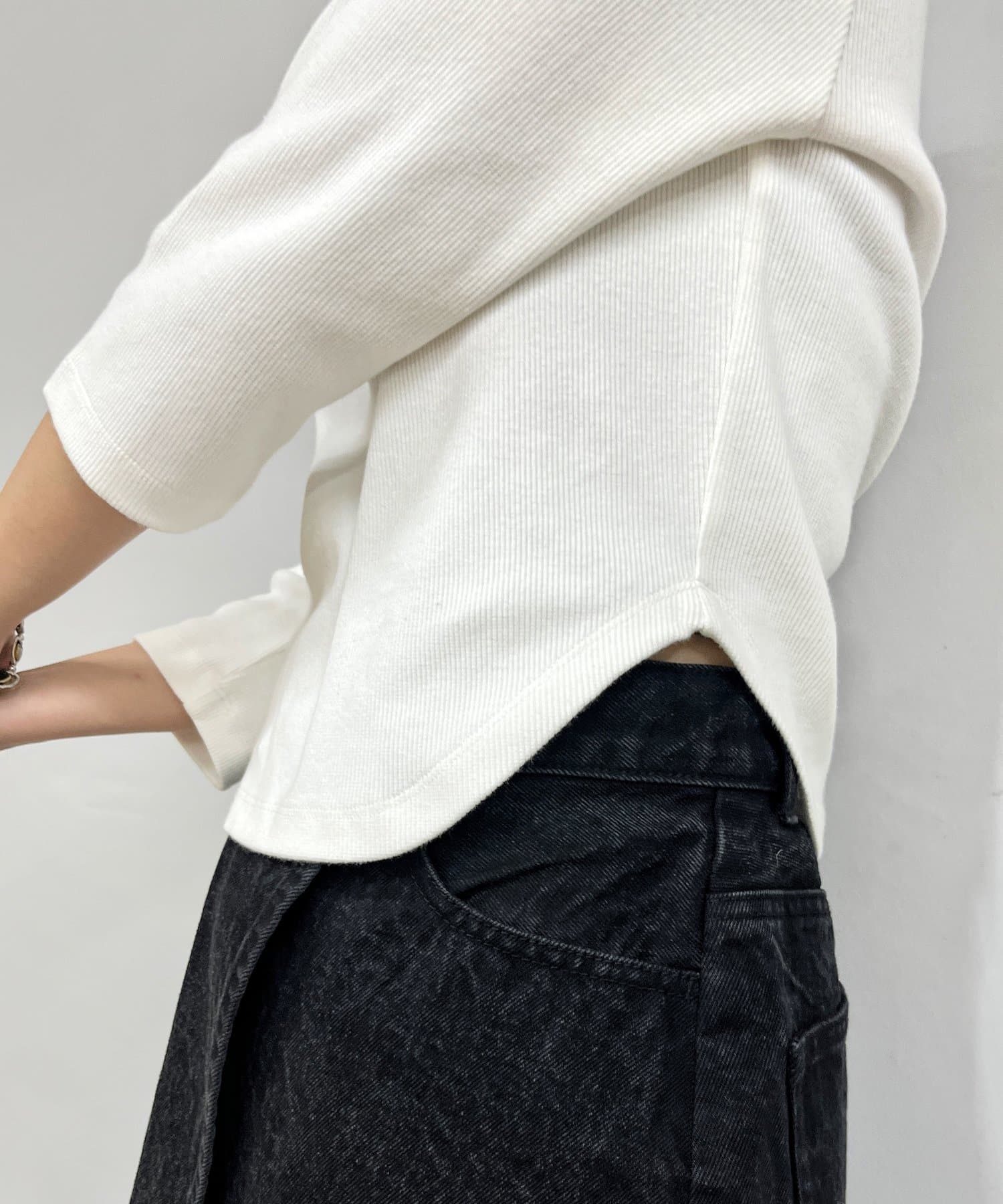 ・裾のラウンドカットでアウトスタイルでもキマるトップス。