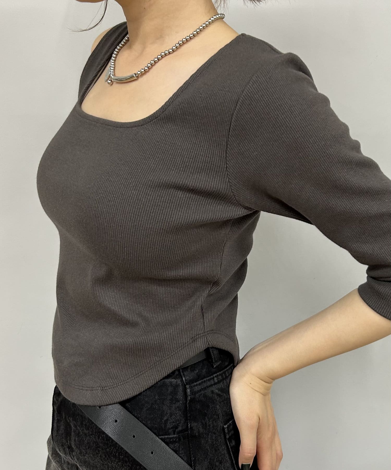 ・スクエアの広めの首元で鎖骨見せ。すっきり華奢見えが叶います。