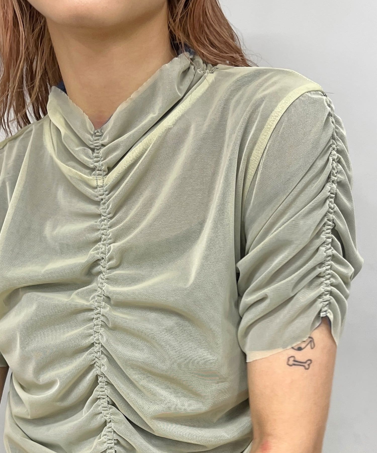 【完売アイテム再入荷】Six Mギャザー2WAYトップス