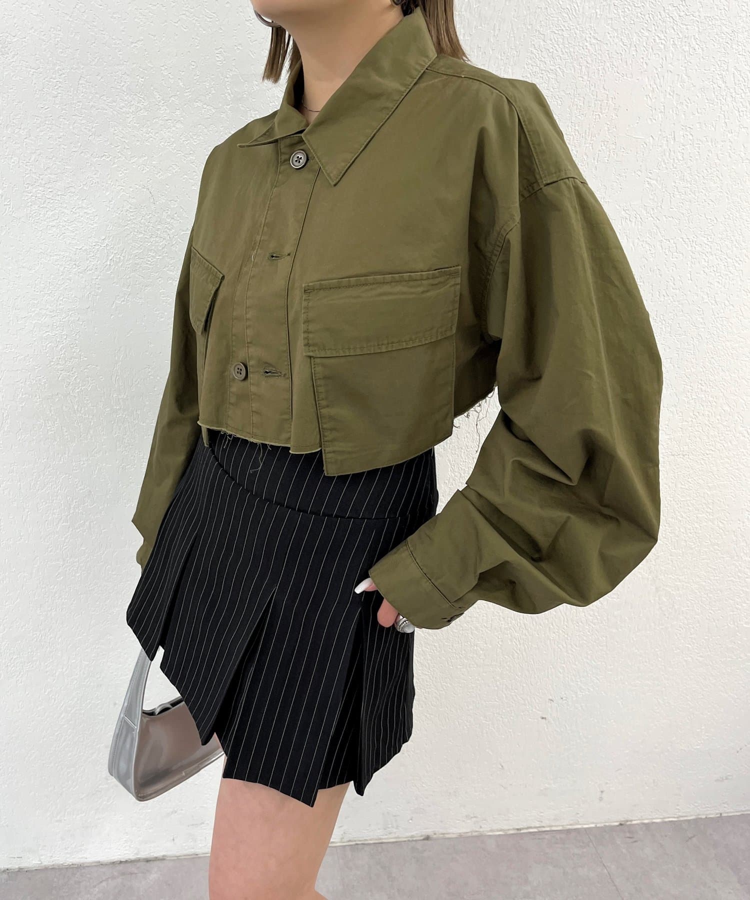 ・タックが入った袖ボリューム×ショート丈で全体のバランス◎