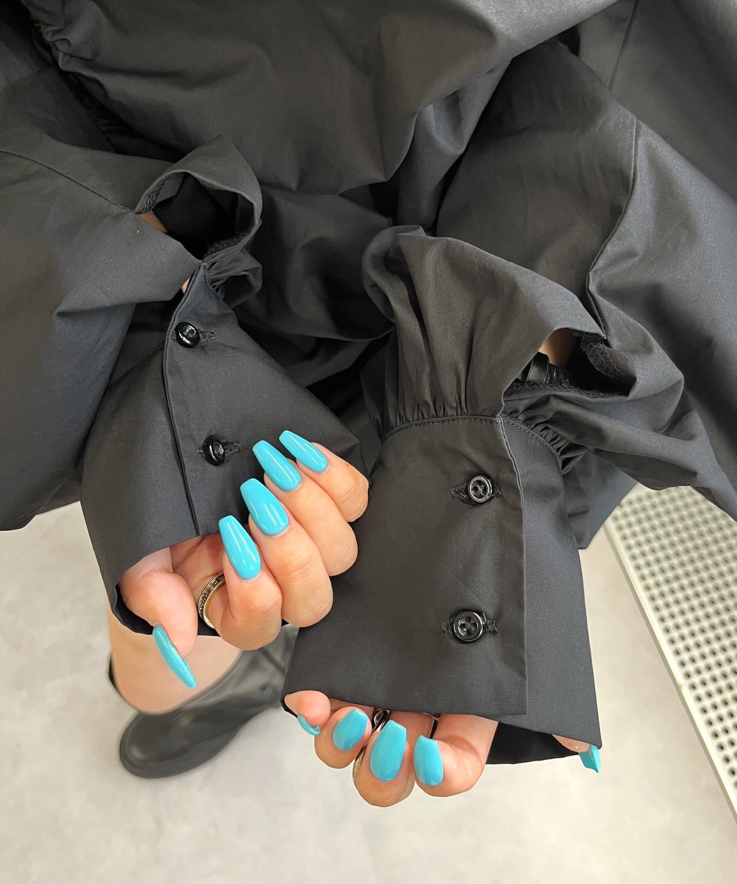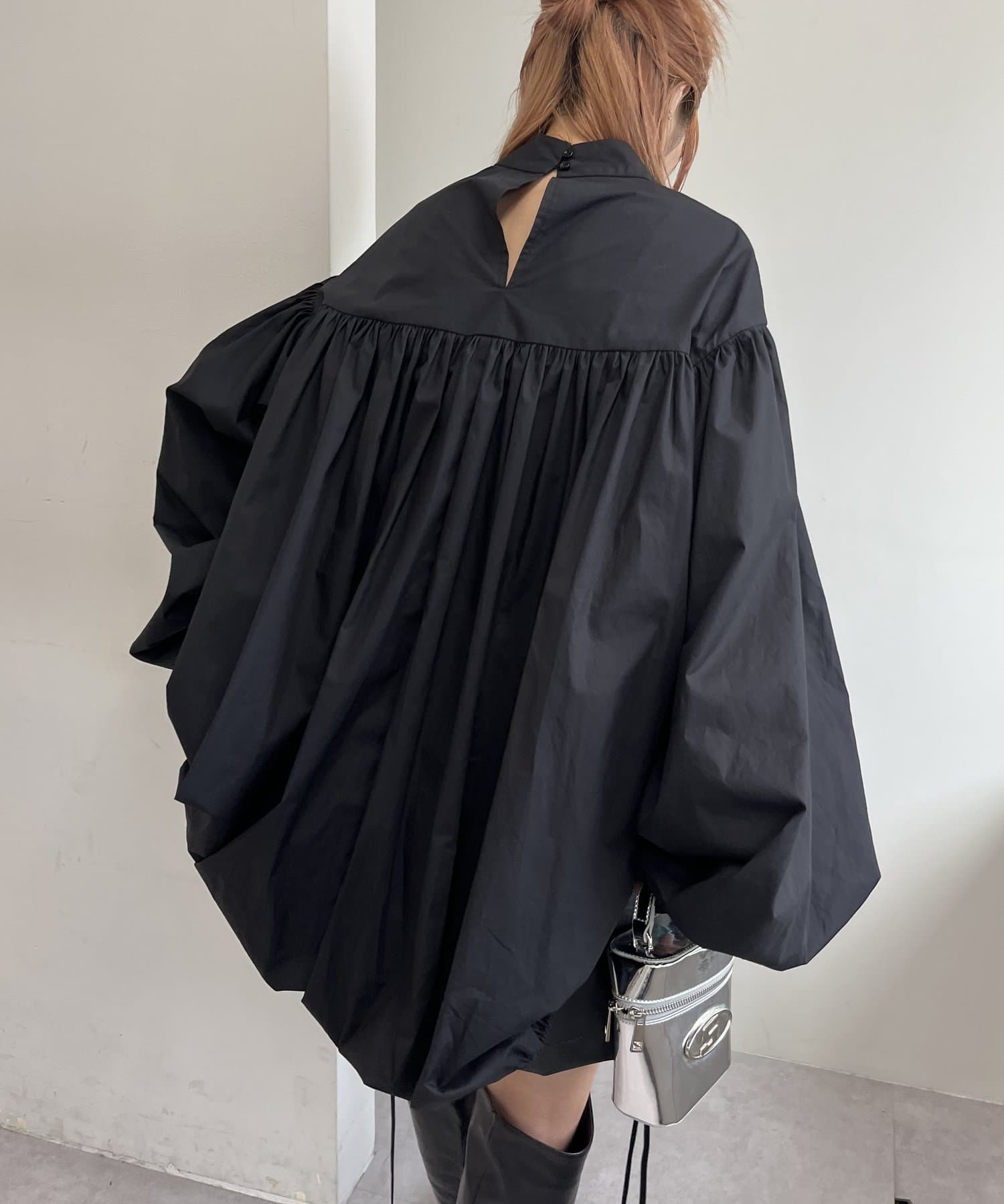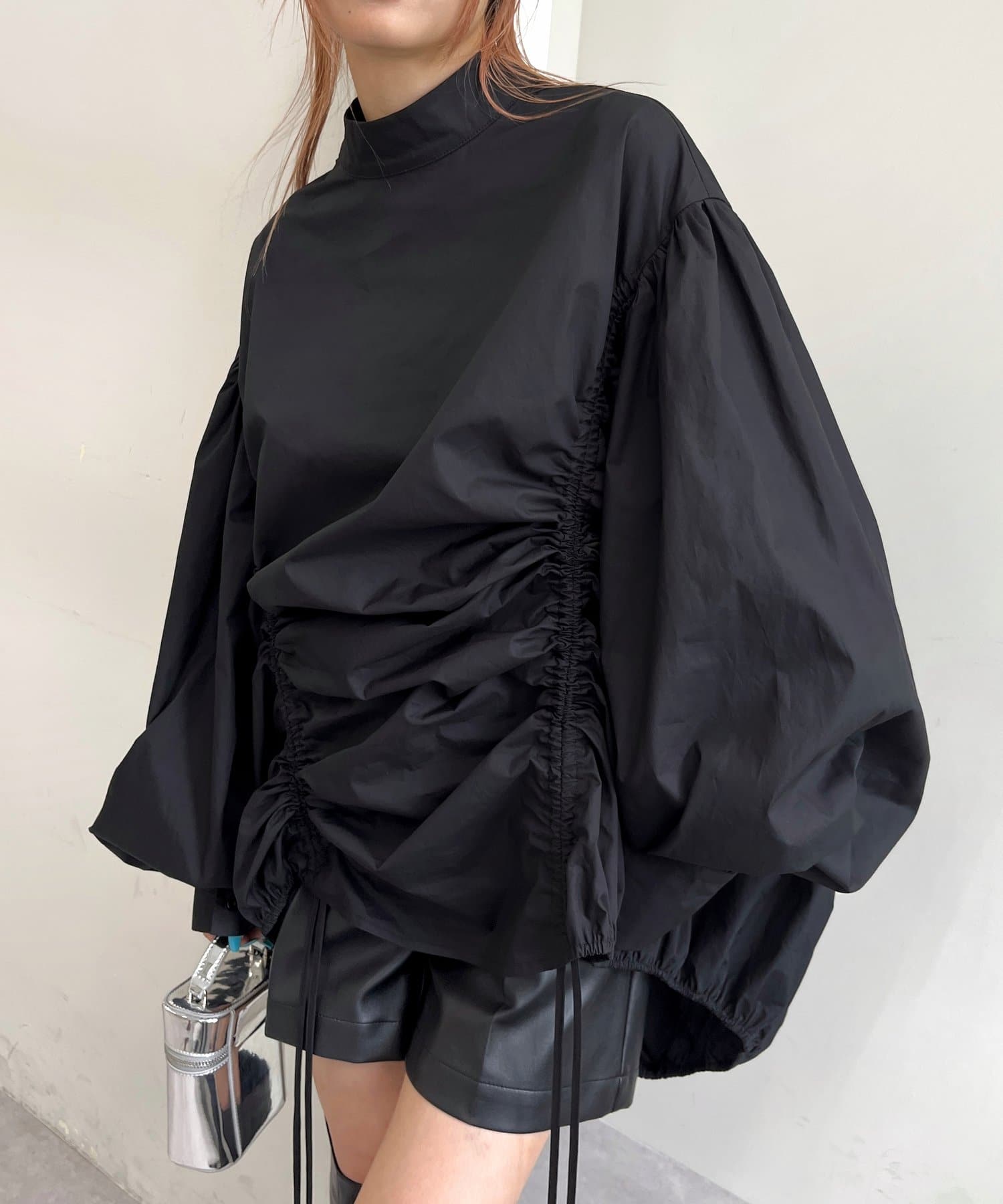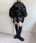 ・フロントのタックで丈感を調節可能。寄せた時のクシュっと感もキュートなポイント。