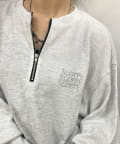 【WHO'S WHO gallery】ワッフルハーフジップ刺繍ロゴビッグロンT