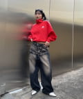 ジャストサイズでスッキリと着れるので、ワイドパンツ合わせが相性抜群。