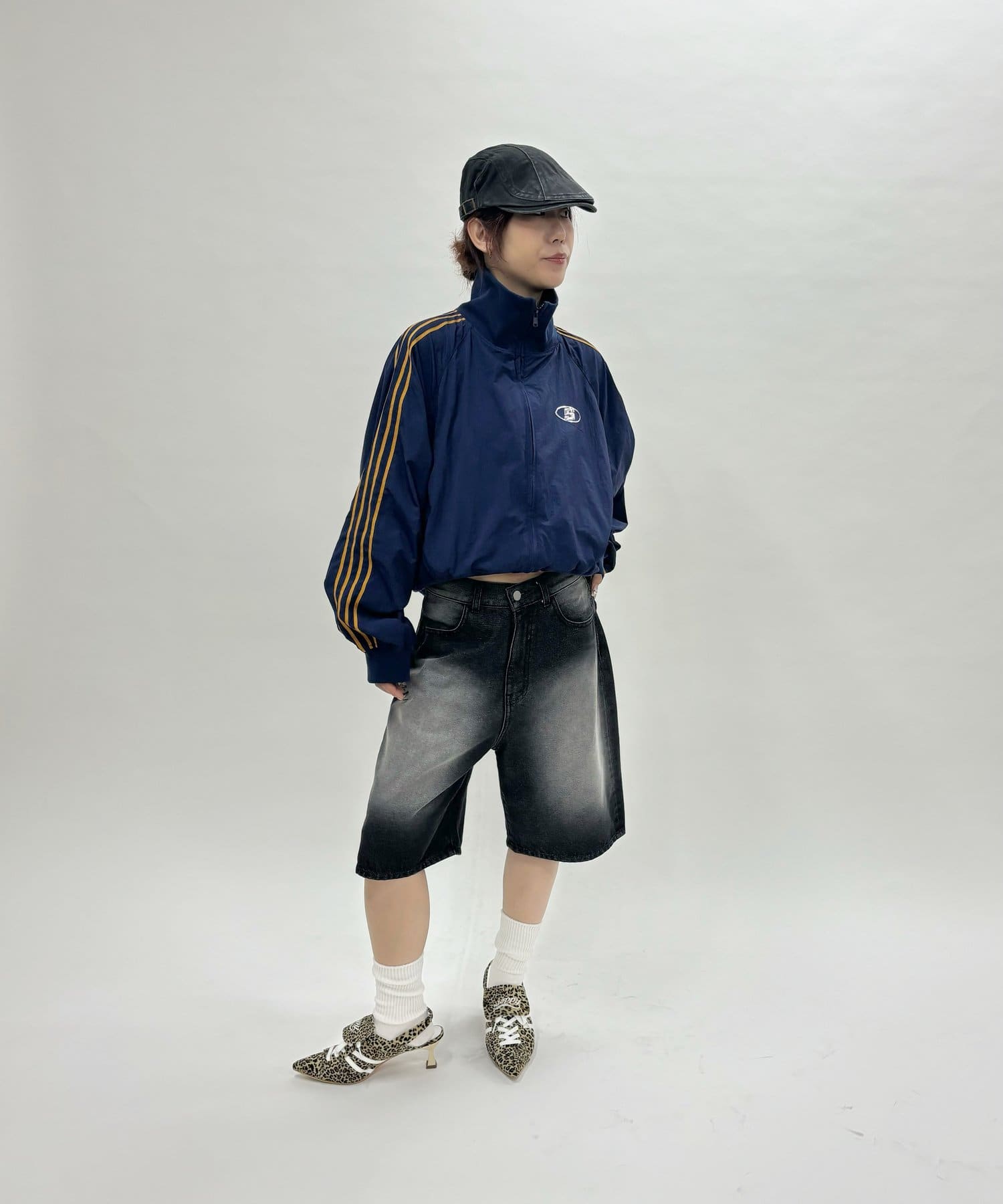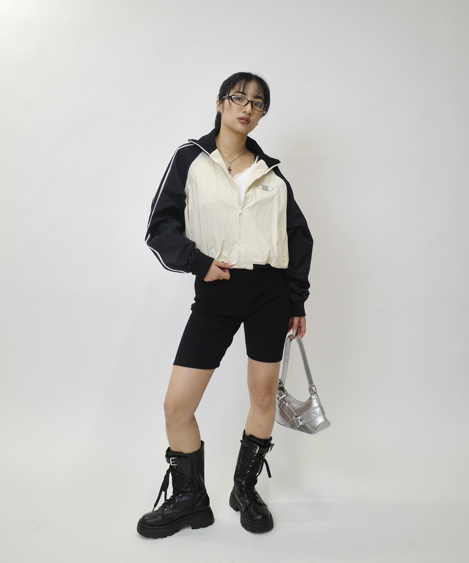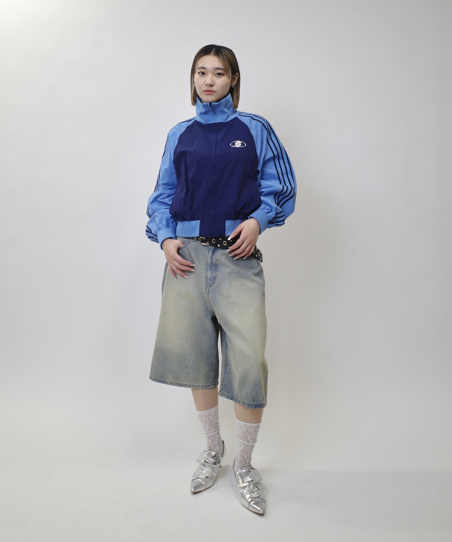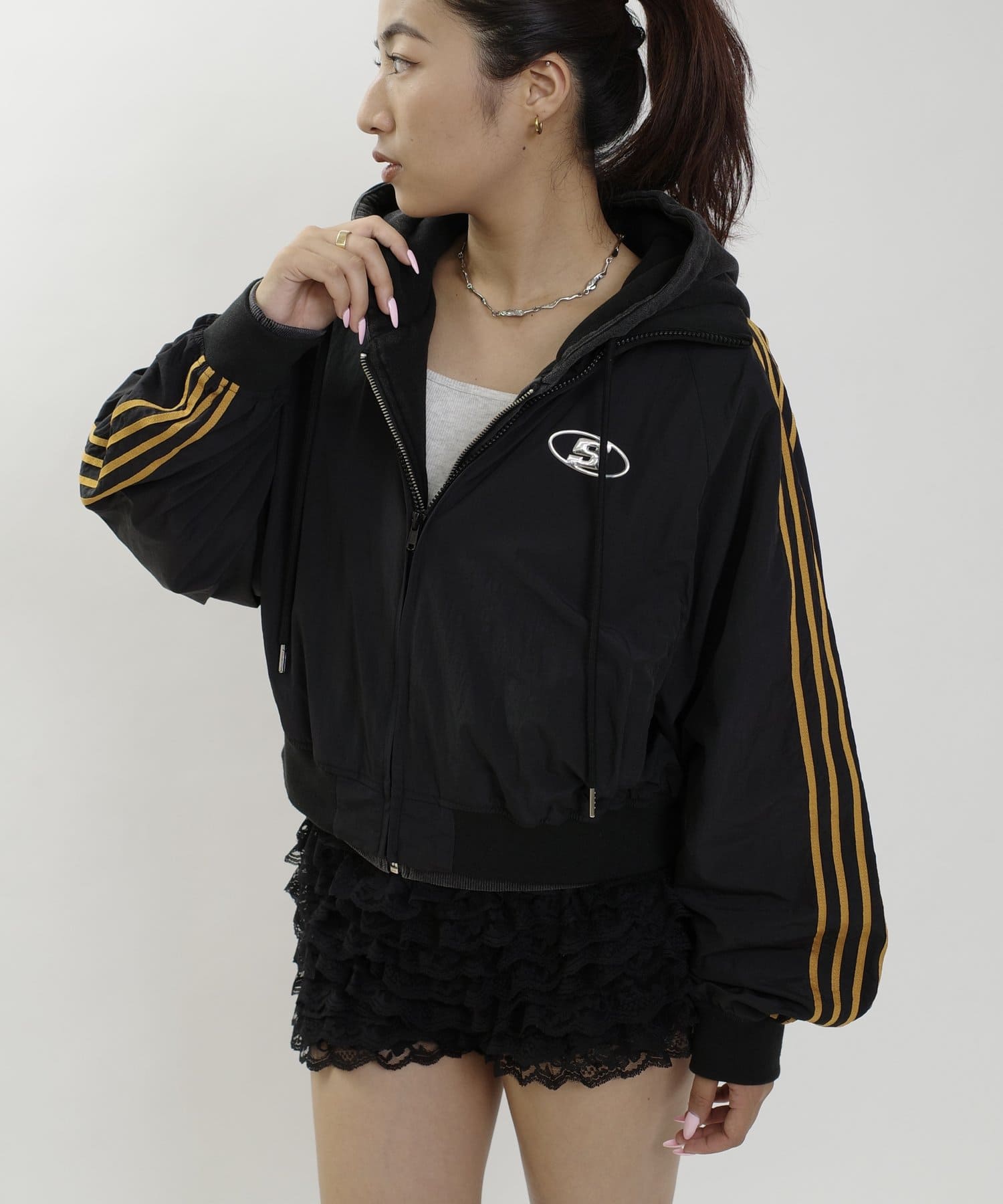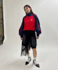 ミニ丈ボトムで合わせると今年らしギャルっぽスタイルに。