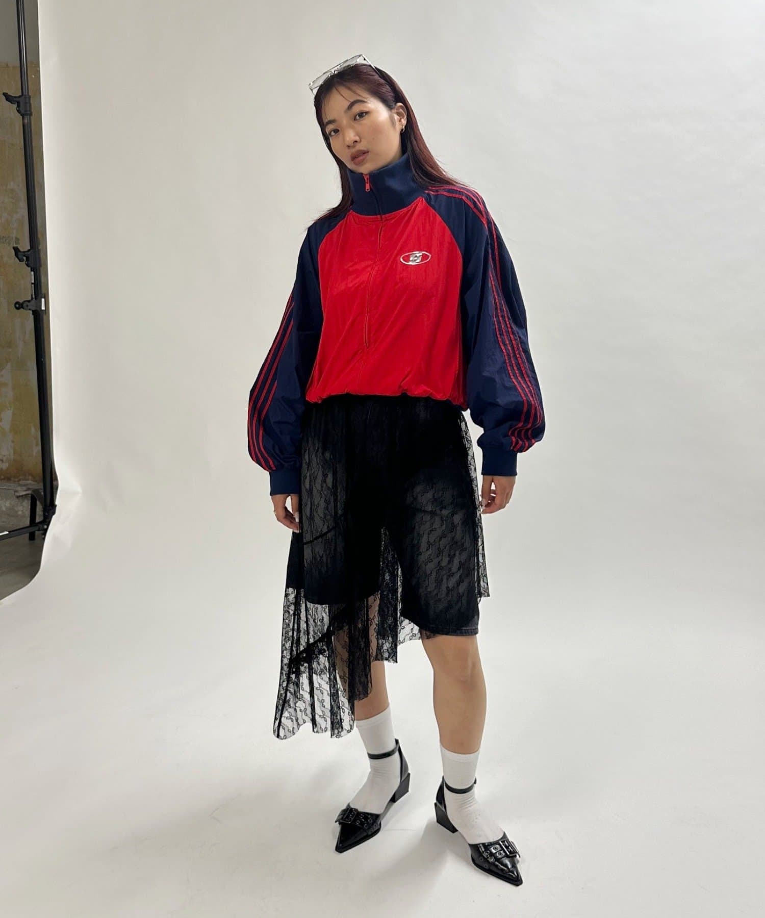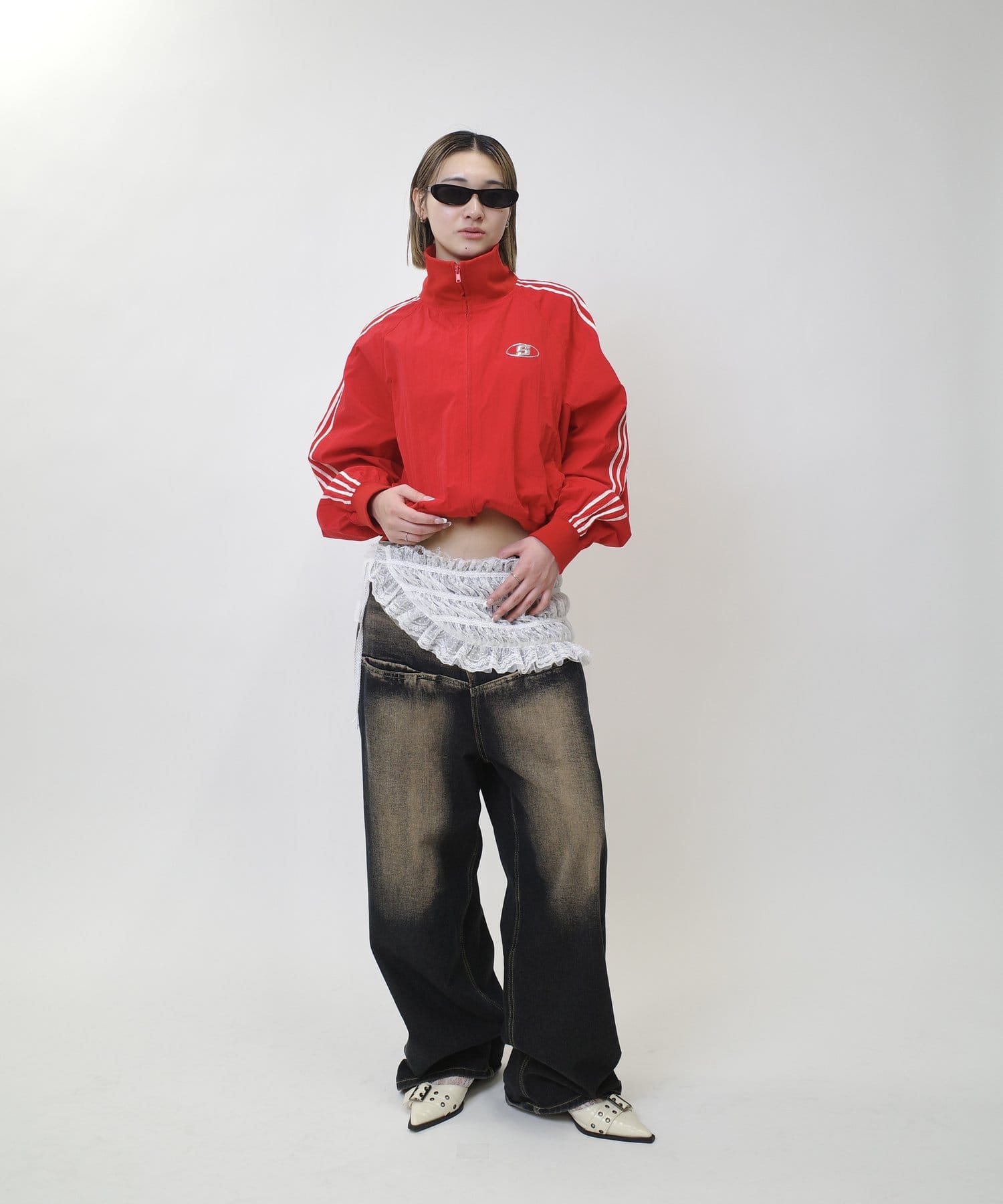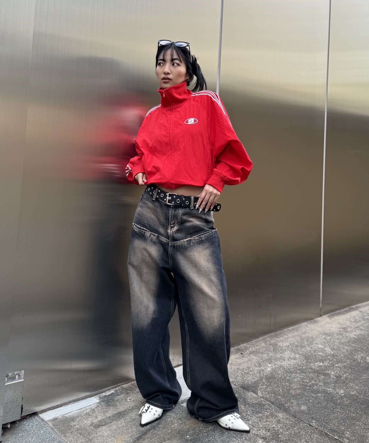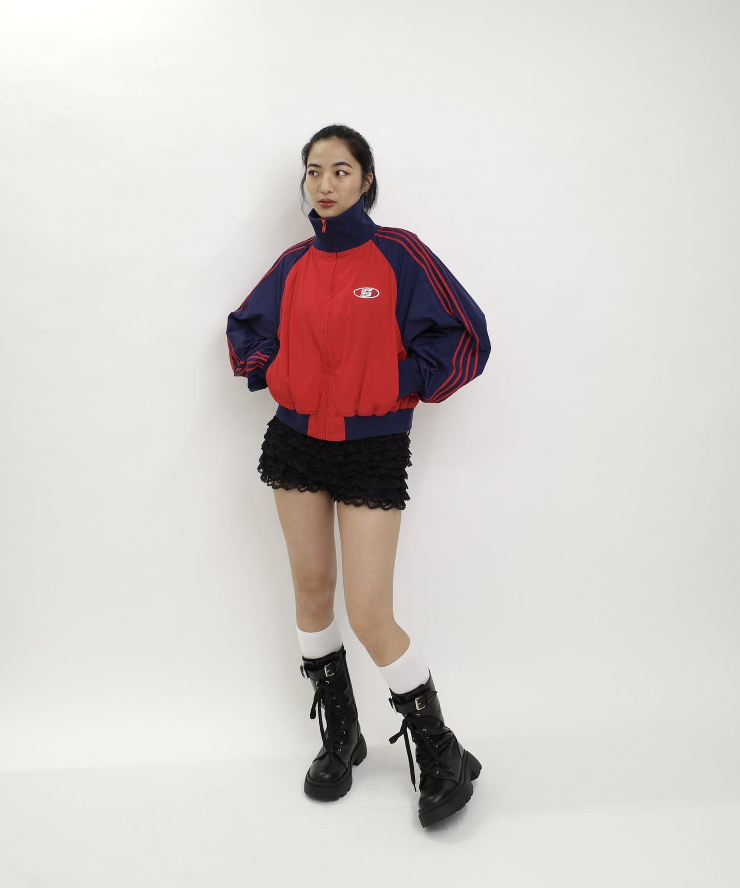 ミニ丈ボトムで合わせると今年らしギャルっぽスタイルに。