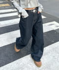 ・太めのシルエットにはコンパクトなトップスがおすすめ。