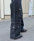 ・存在感のある大きめのポケットがコーディネートのポイントに。