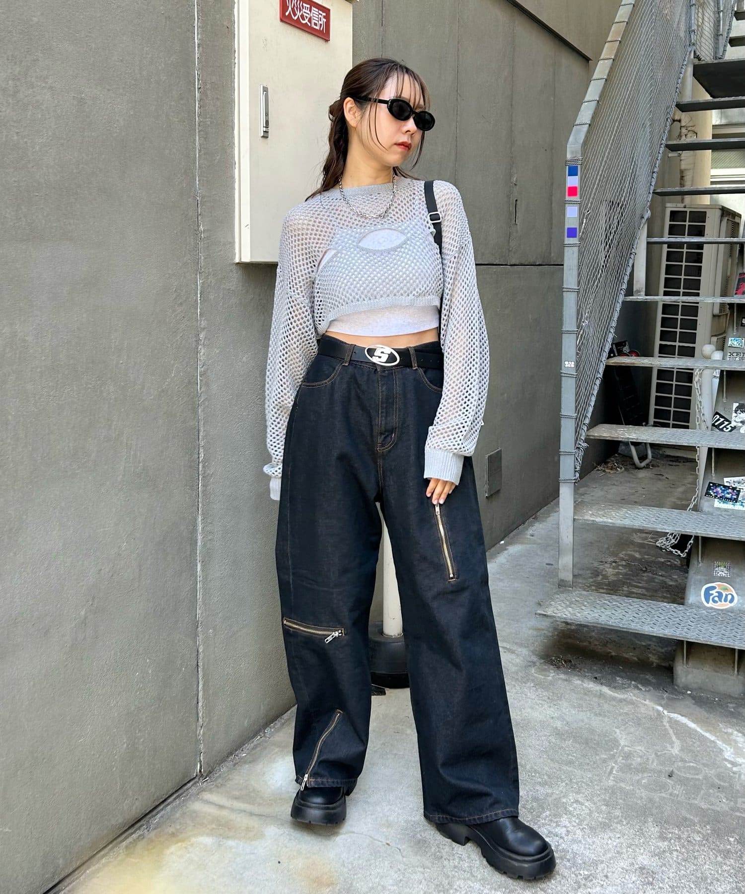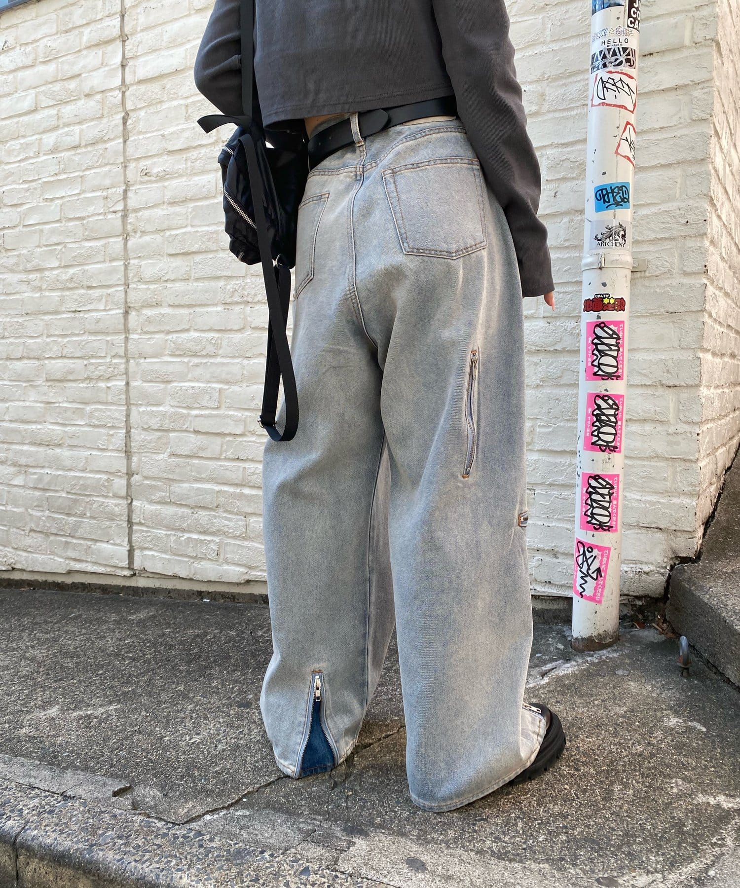 ・所々に施されたファスナーのデザインがアクセントになるデニム。
