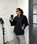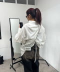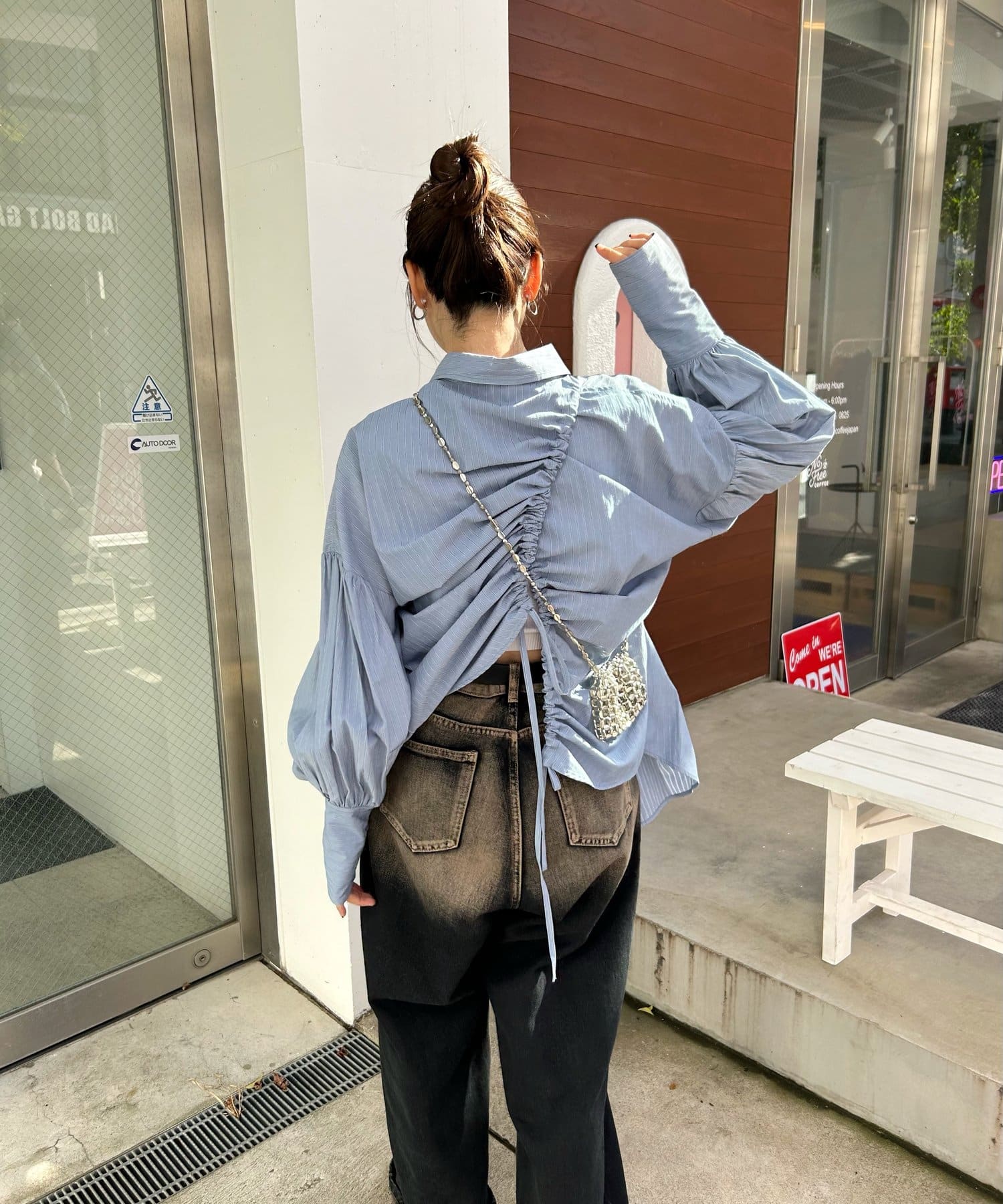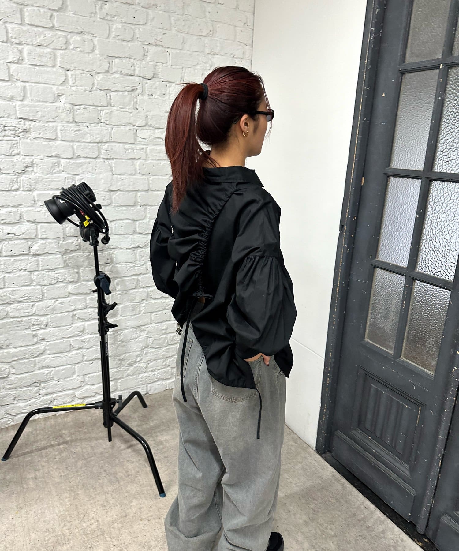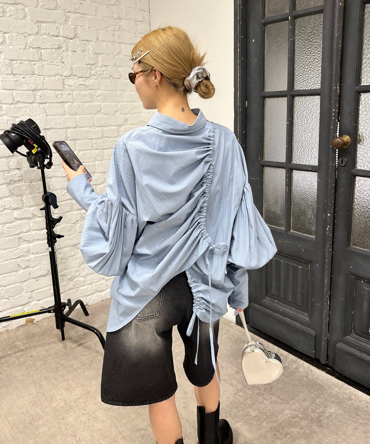 ・ギャザーの締め方でシャツの形が変えられて、気分で着まわせる変形自在なシャツ。
