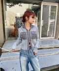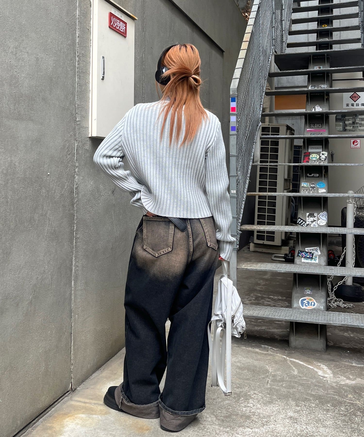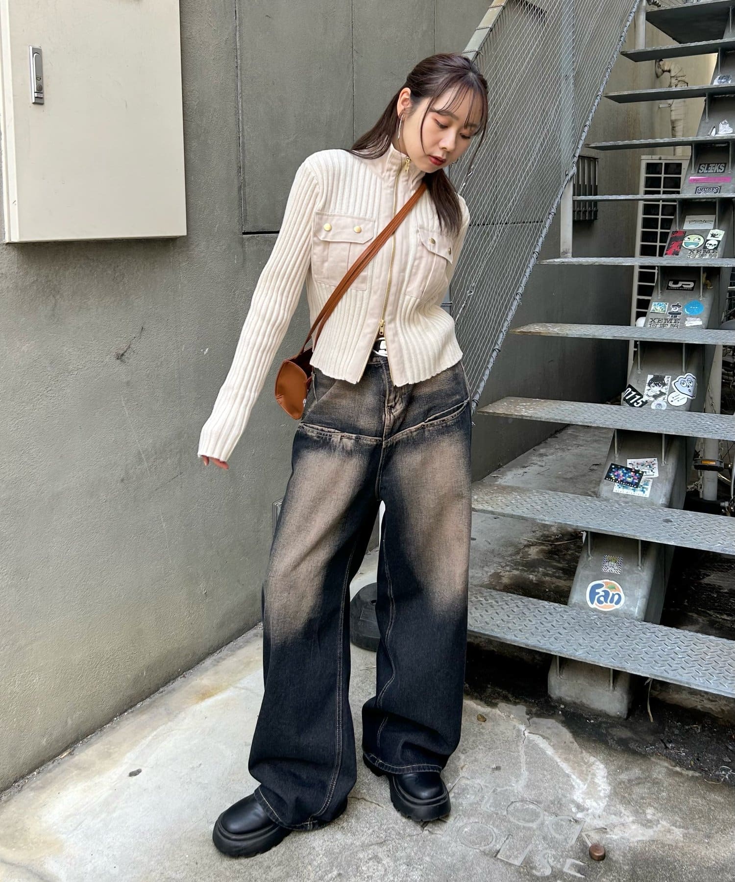 ・トレンドの韓国ストリートの雰囲気にはクールに太めのデニムがおすすめ。