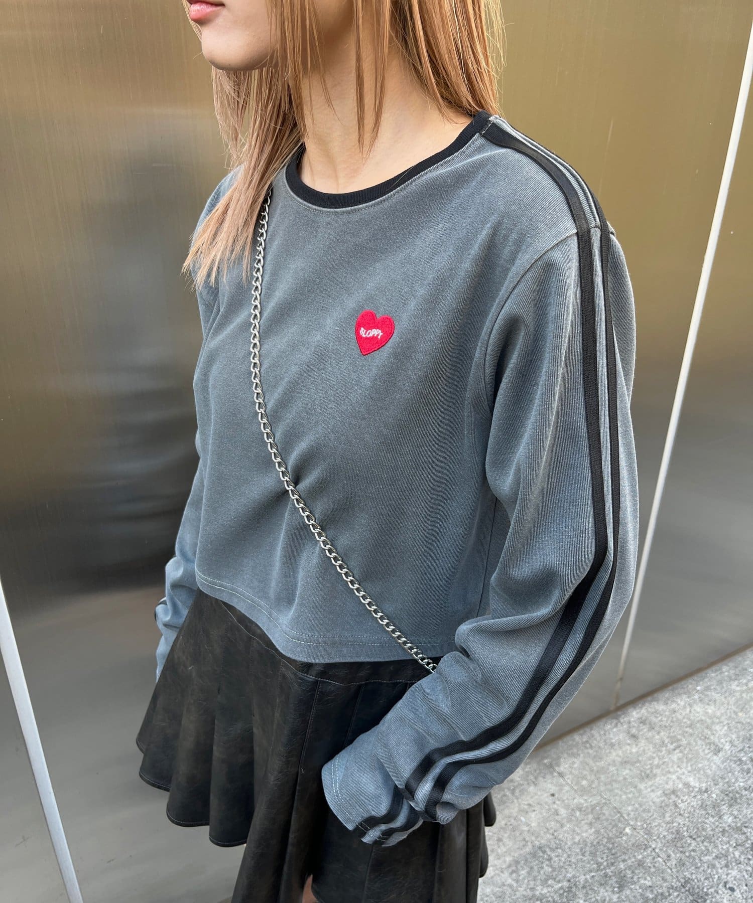 ・胸元のSLOPPYハートモチーフワッペンがキュートなポイント。
