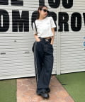 ハイウエストのパンツを合わせると安心してトレンドの着こなしを楽しむことができます。