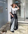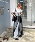 • 150cm/骨格ナチュラルPT:サイドラインワイドデニム OP:SixMチュールワンピ