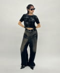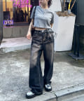 • 157cm/骨格ウェーブPT/サイドラインワイドデニム