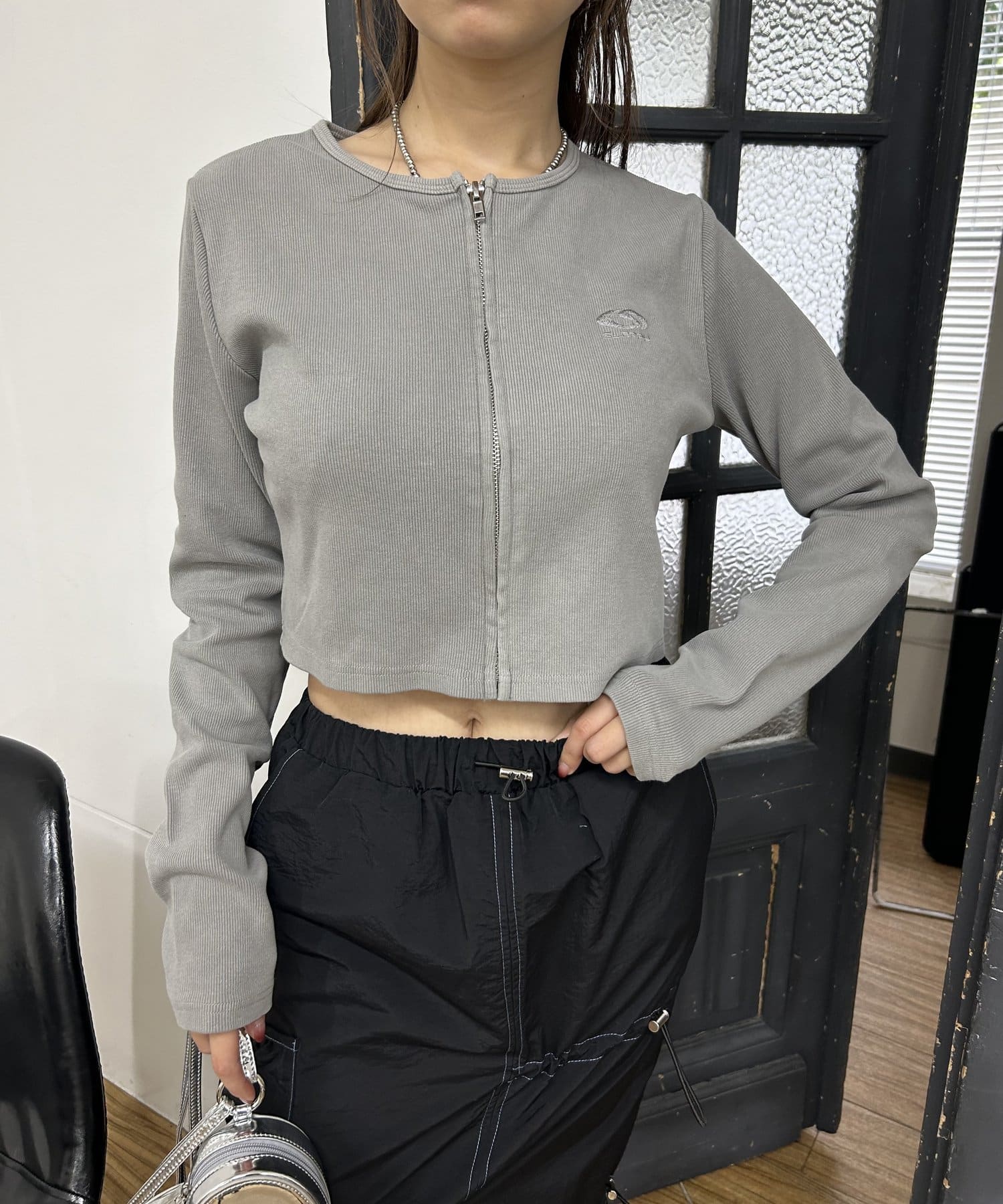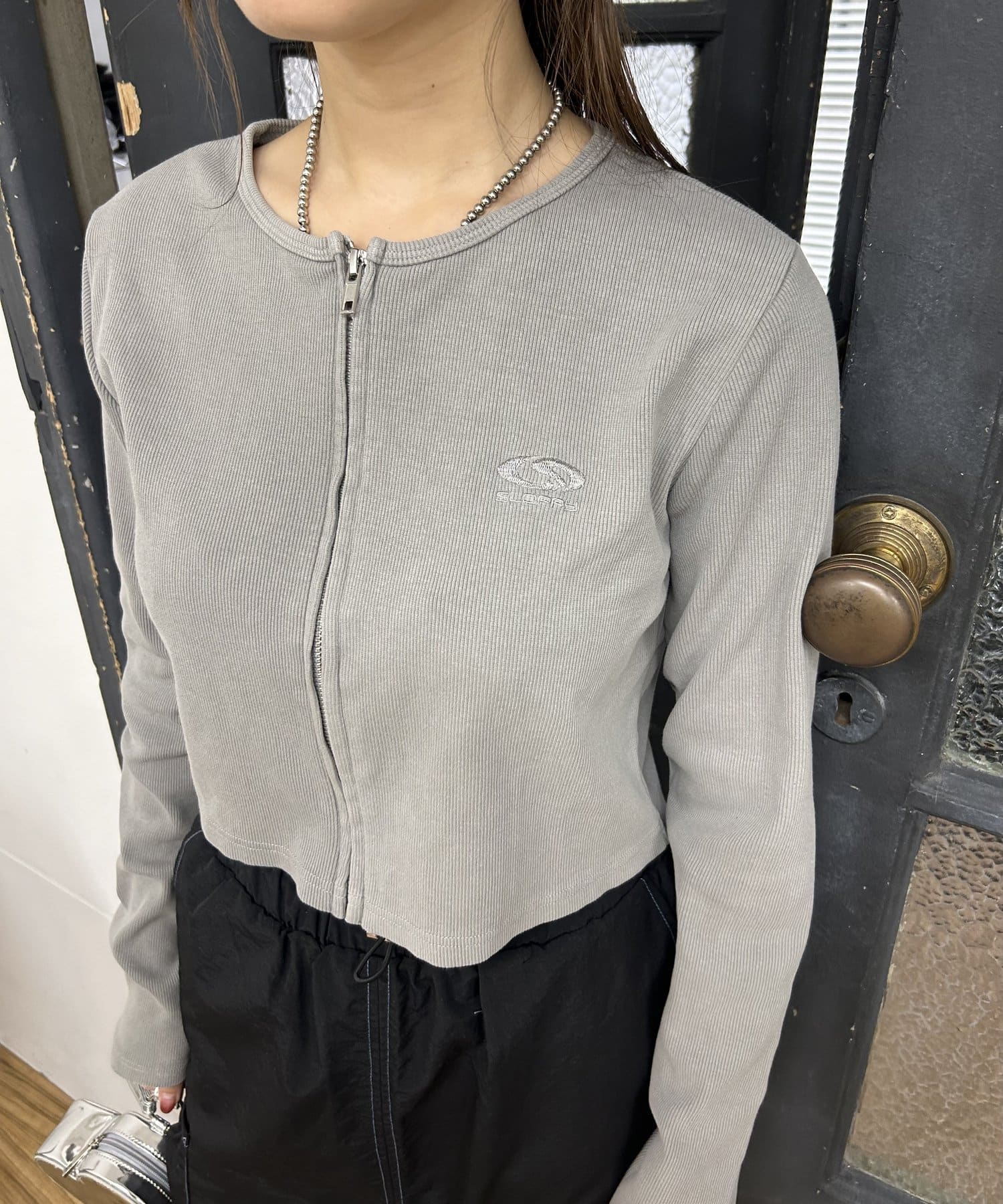 リブ素材とジップのコントラストが1枚で存在感を出してくれます。