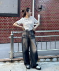 ・トレンドのジャスト丈にはスタイルアップが叶うワイドデニムスタイルがおすすめ◎