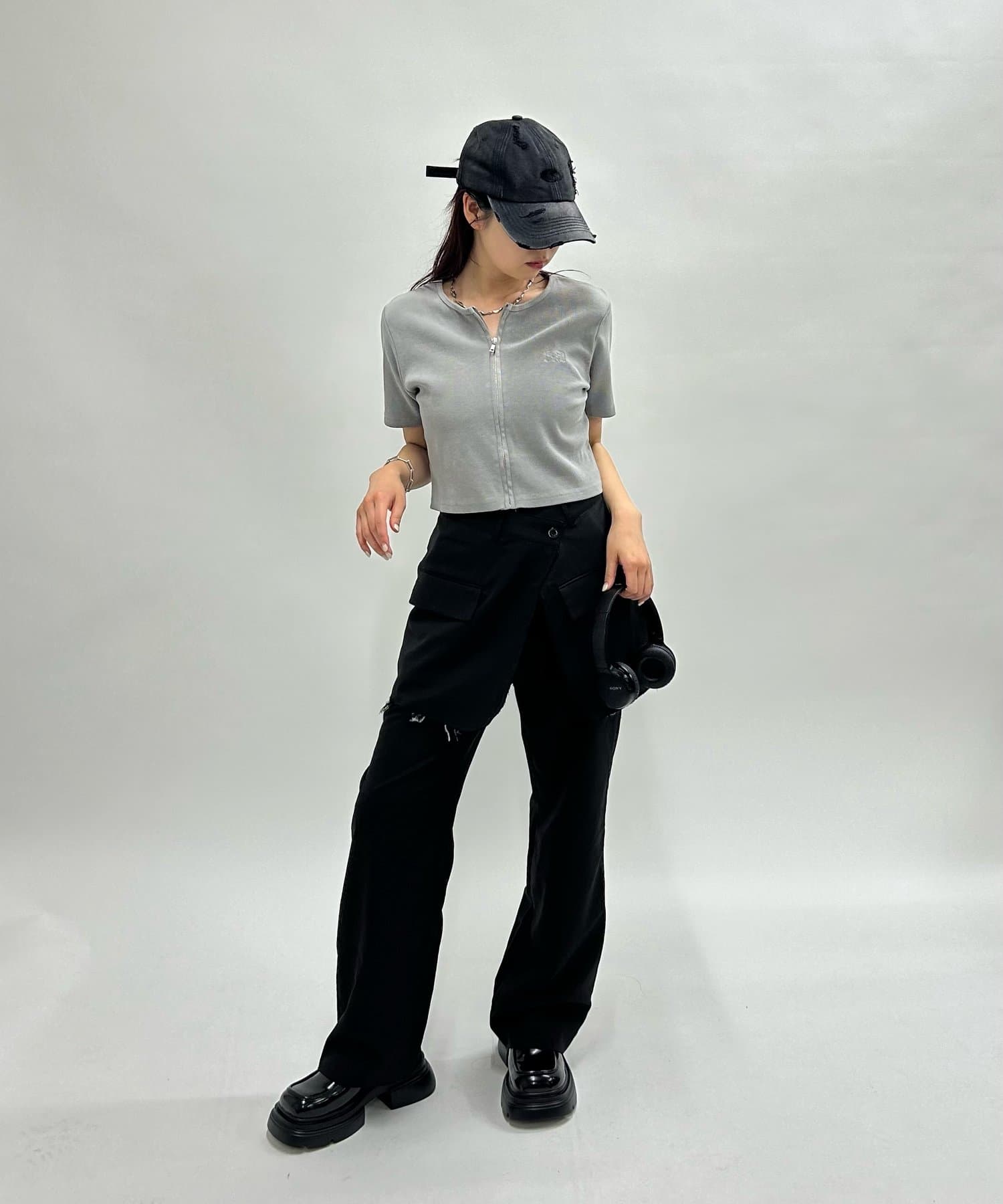 フロントにジップデザインが施されているため羽織スタイルも◎