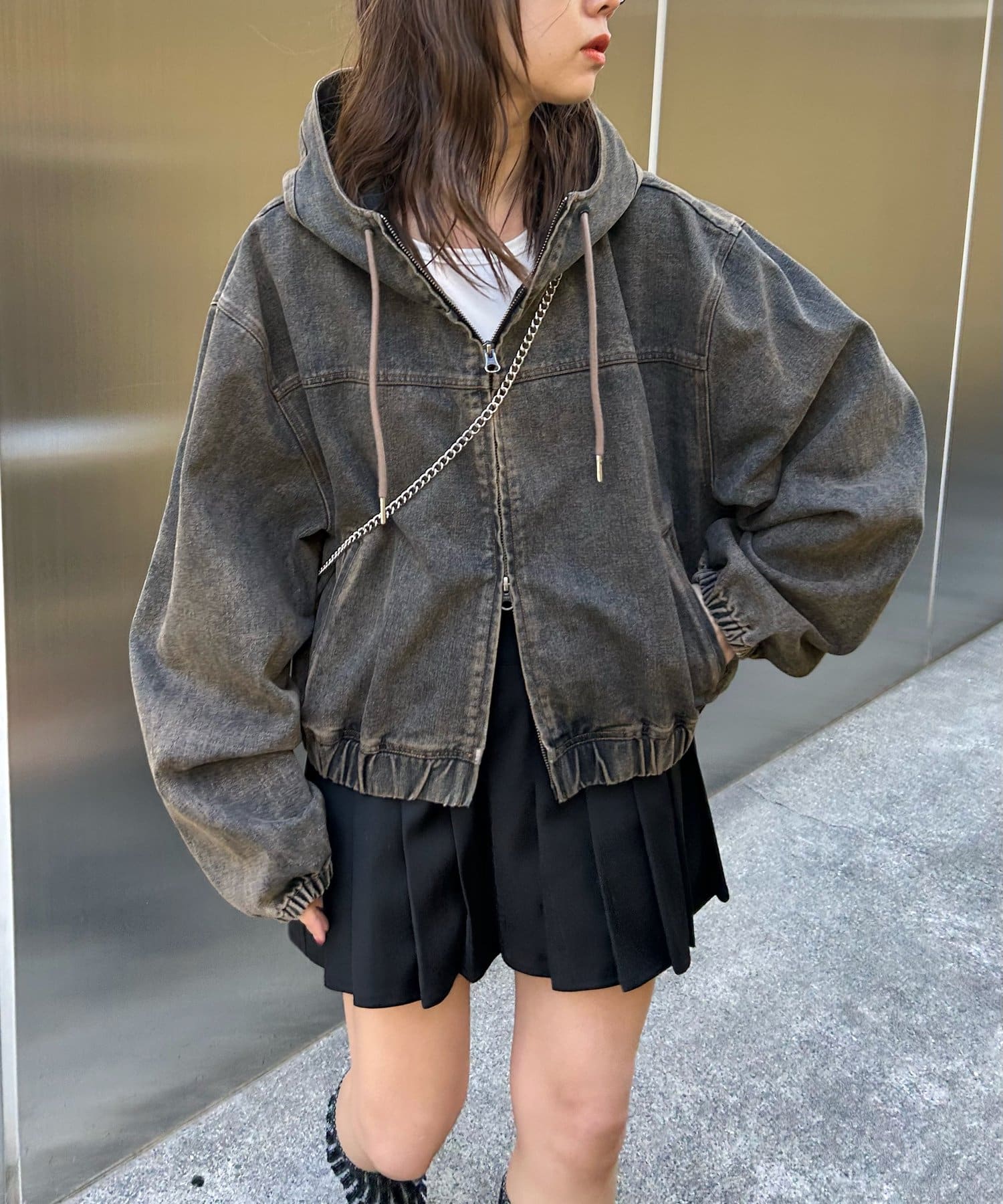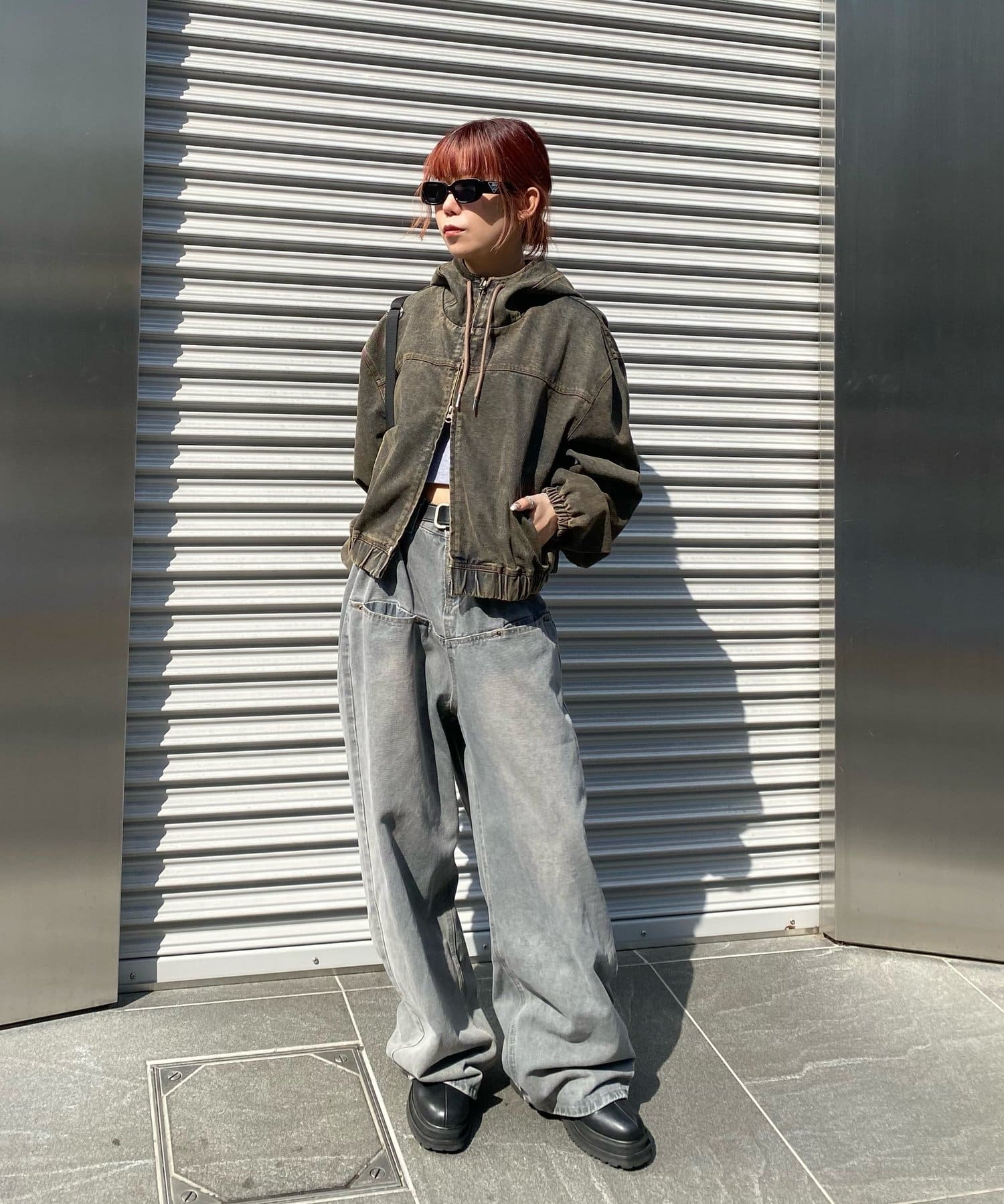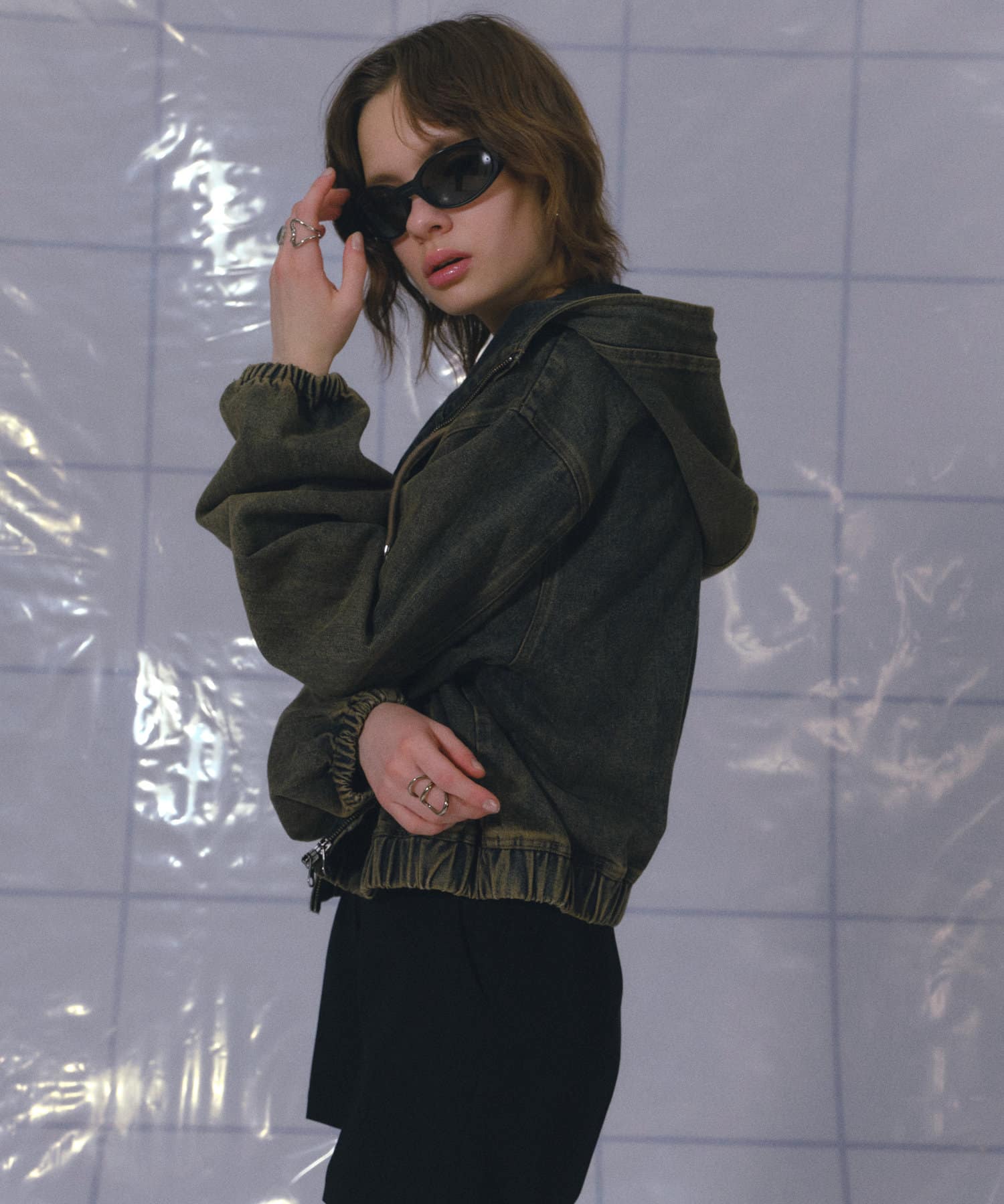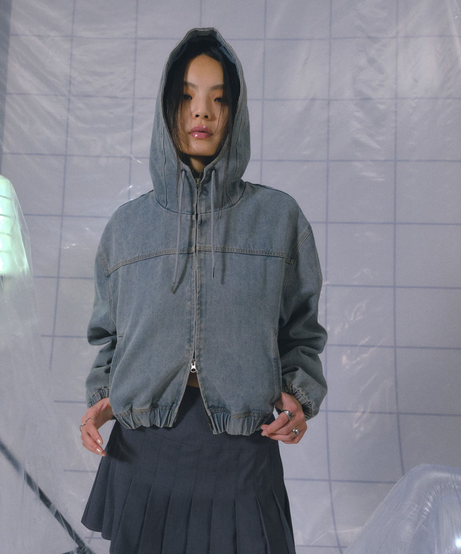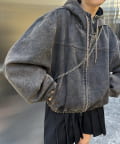 トレンドの加工感がぎゅっと詰まったデニムフードブルゾン