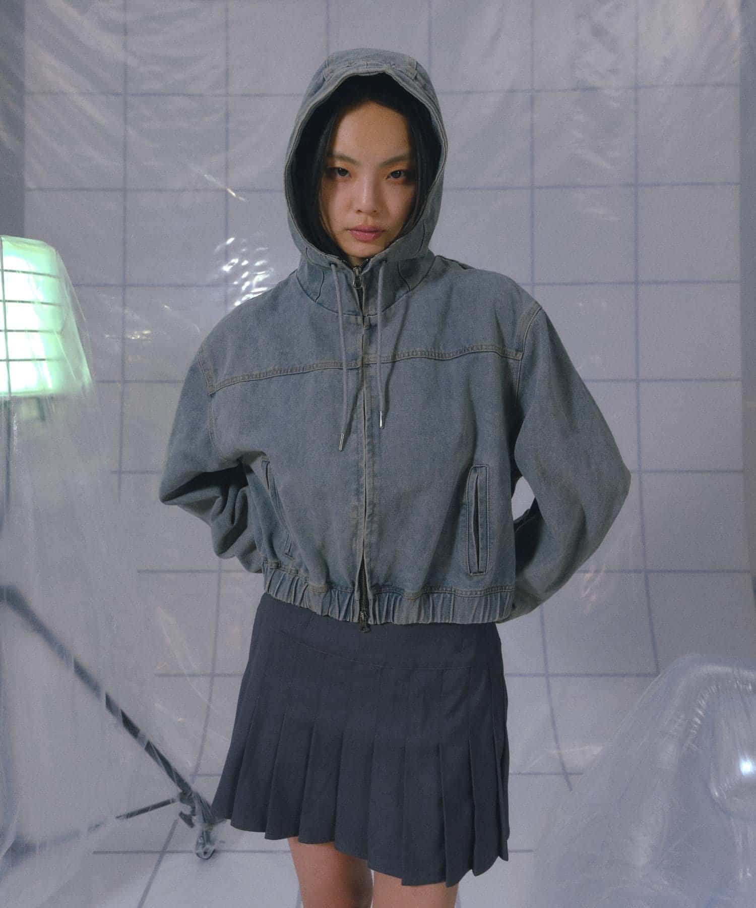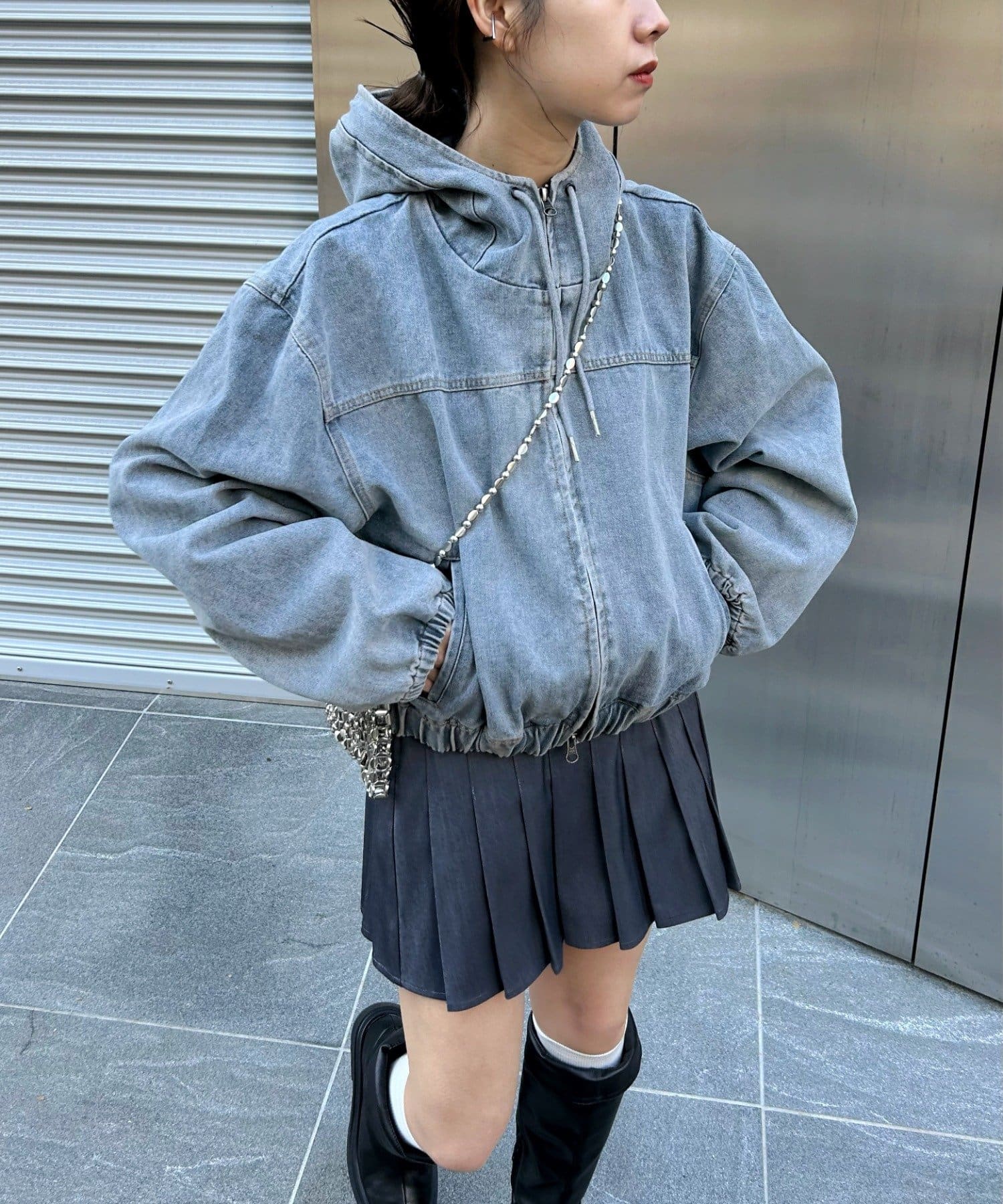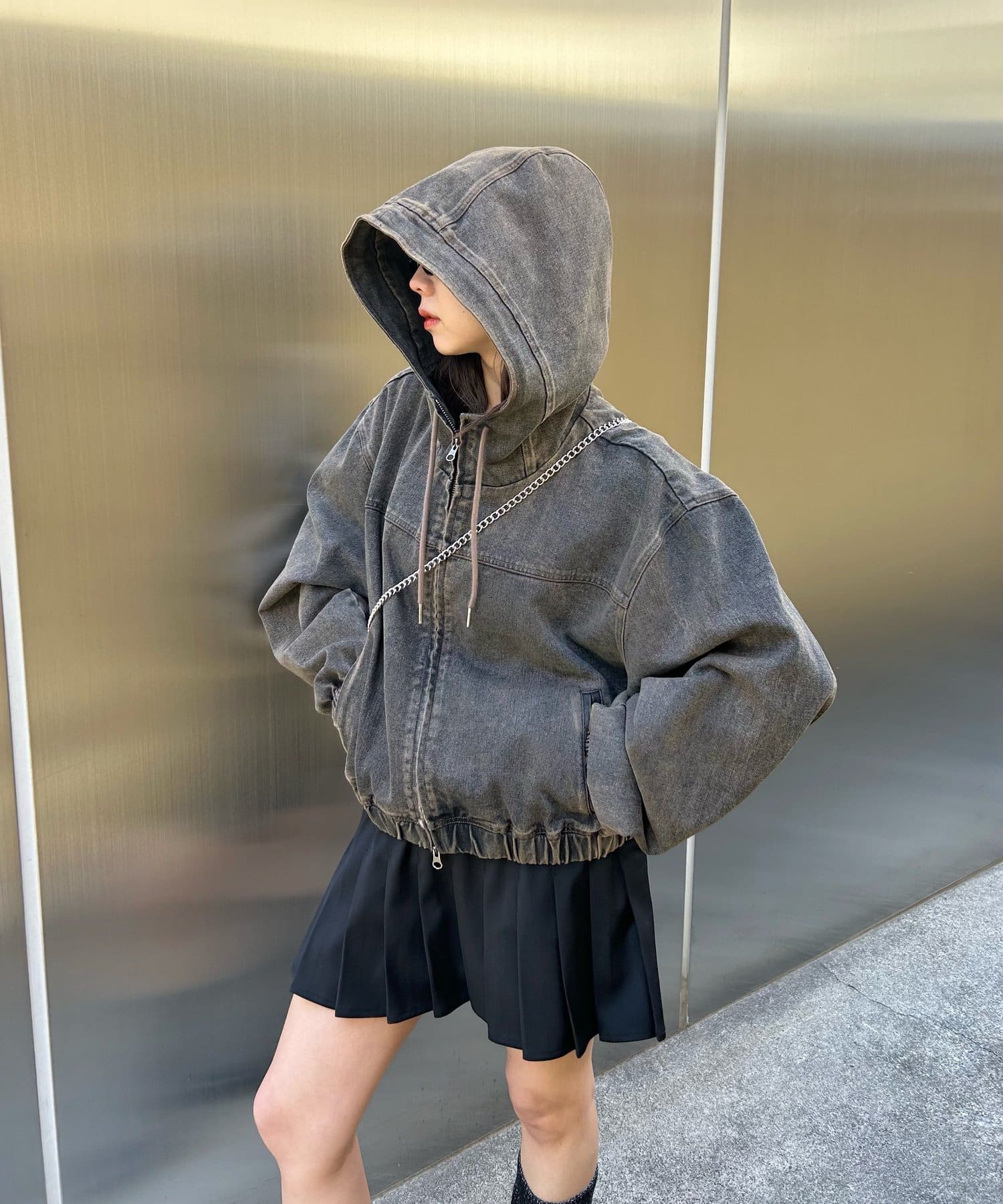 トレンドの加工感がぎゅっと詰まったデニムフードブルゾン