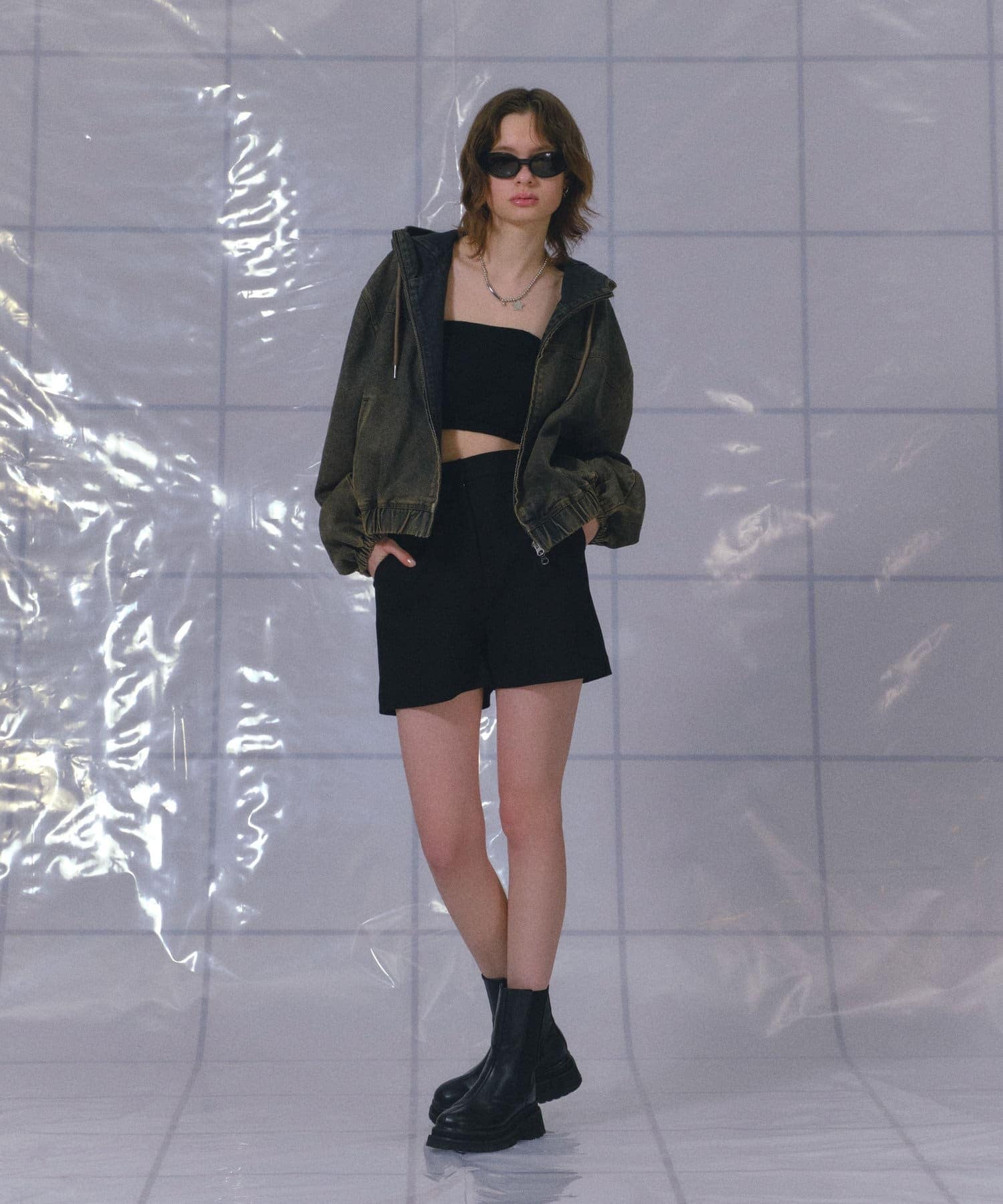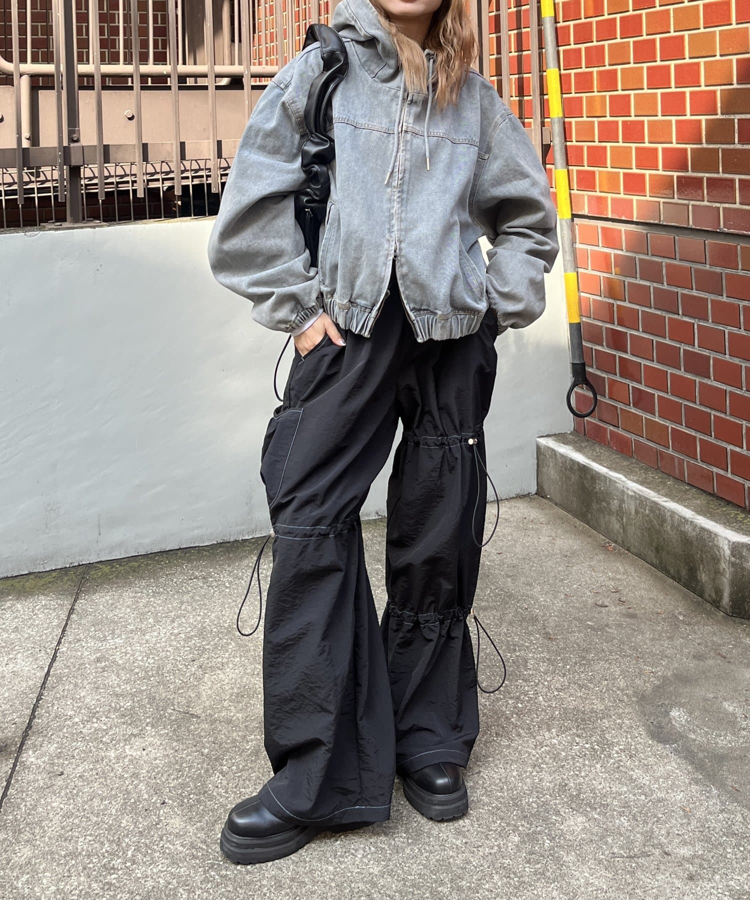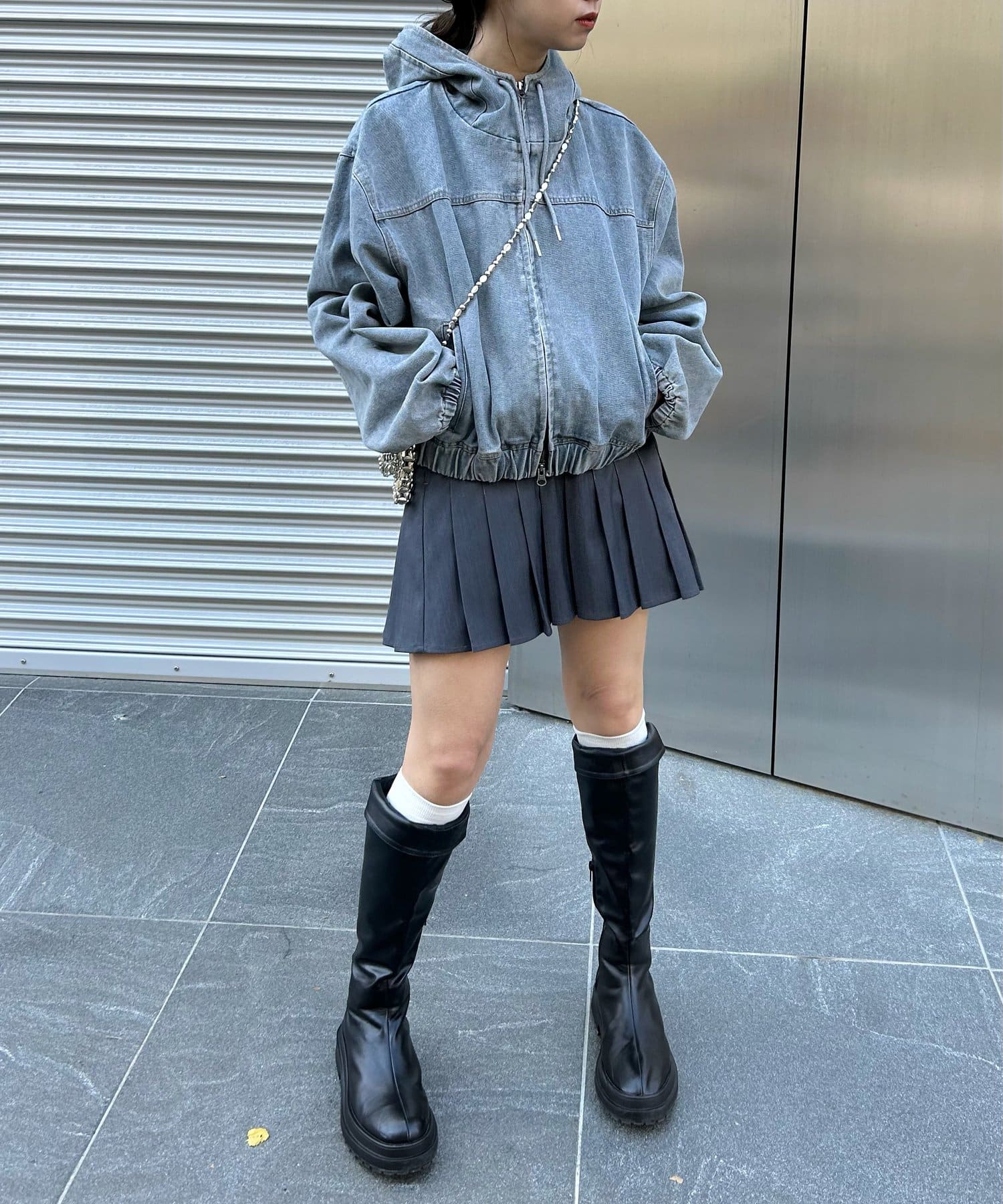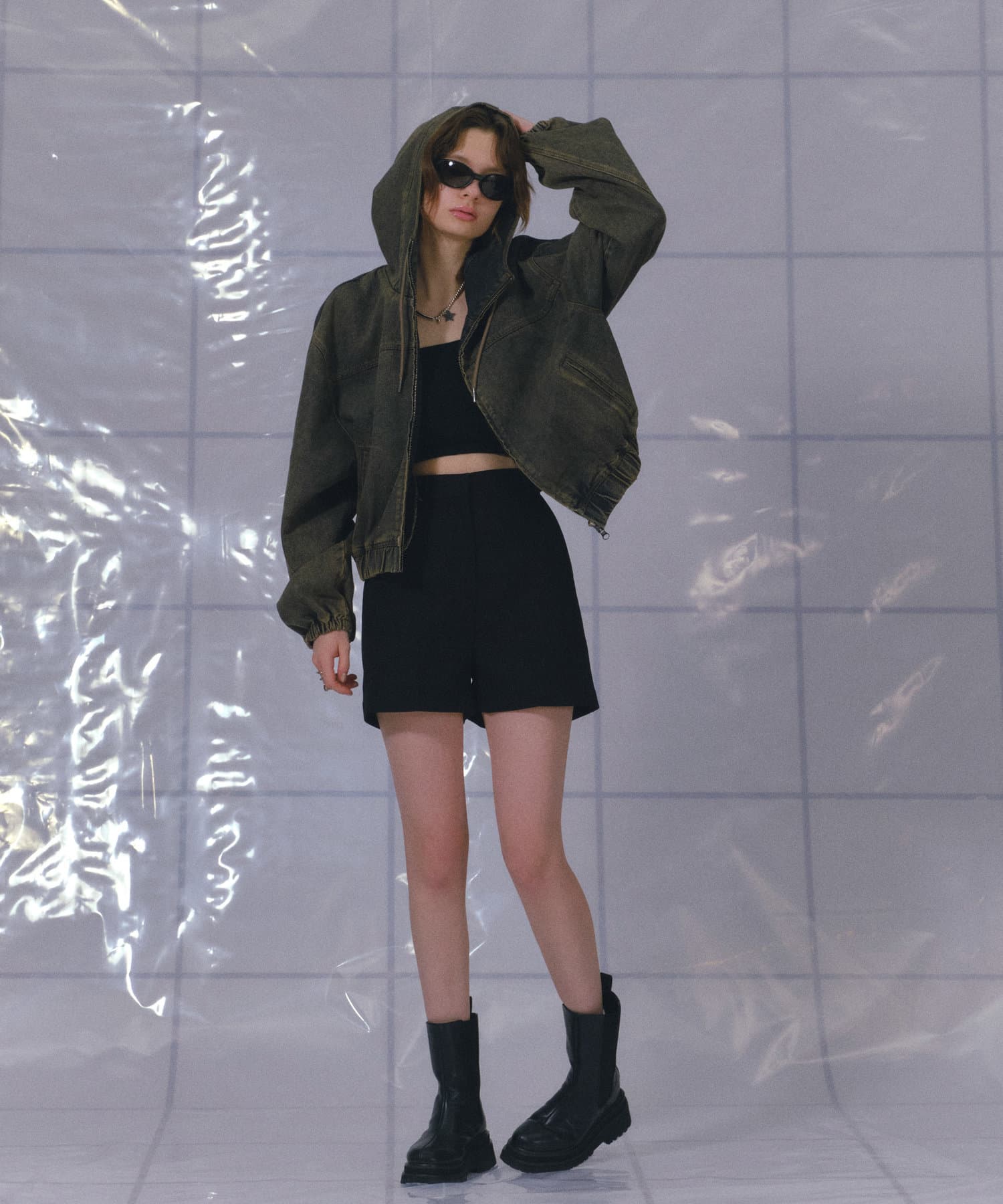 トレンドの加工感がぎゅっと詰まったデニムフードブルゾン