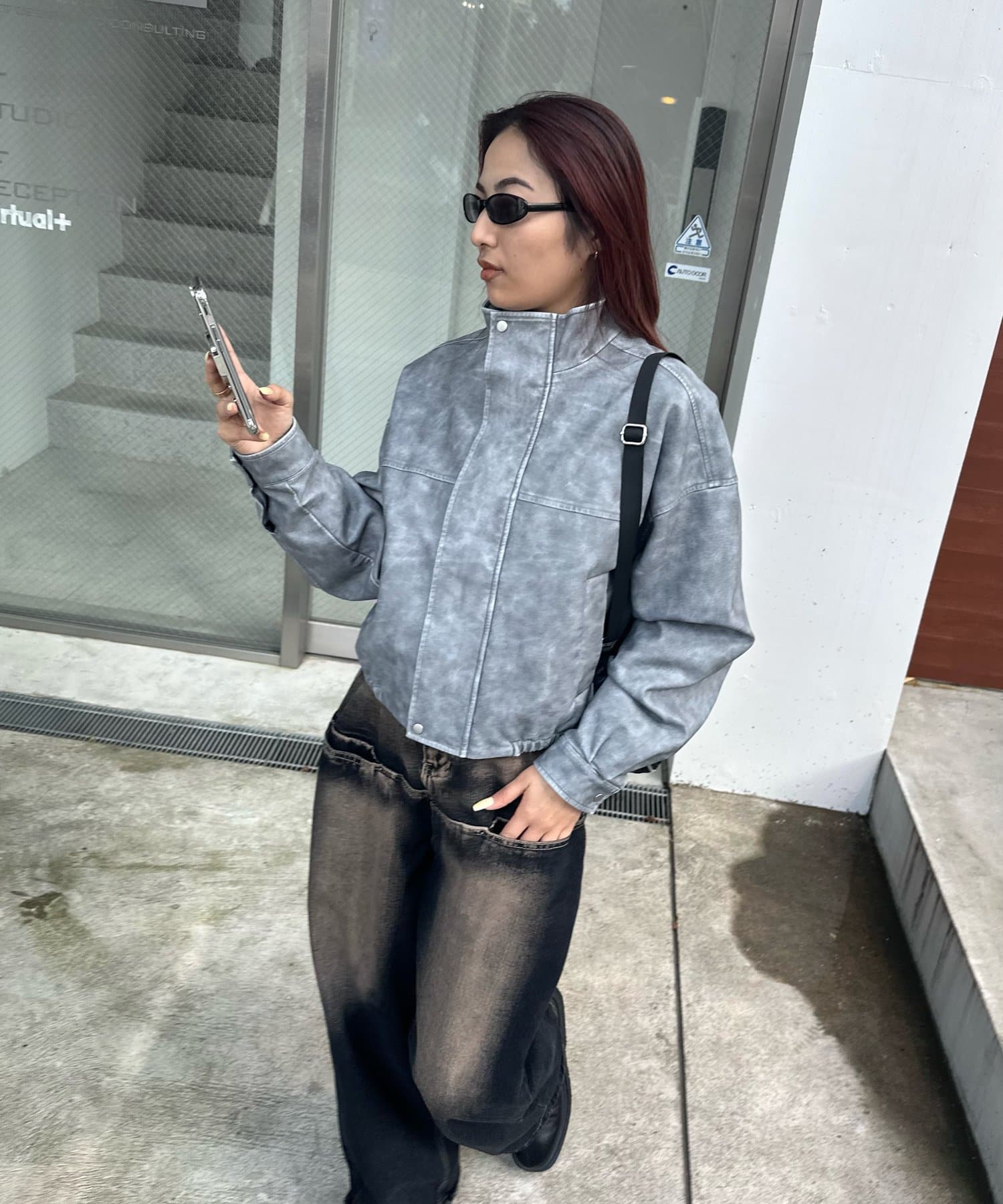 トレンドのレザーブルゾン。店鋪でも人気急上昇!