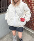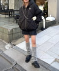 ・オーバーサイズなブルゾンと合わせるときはバランスよくミニボトムスがおすすめ。